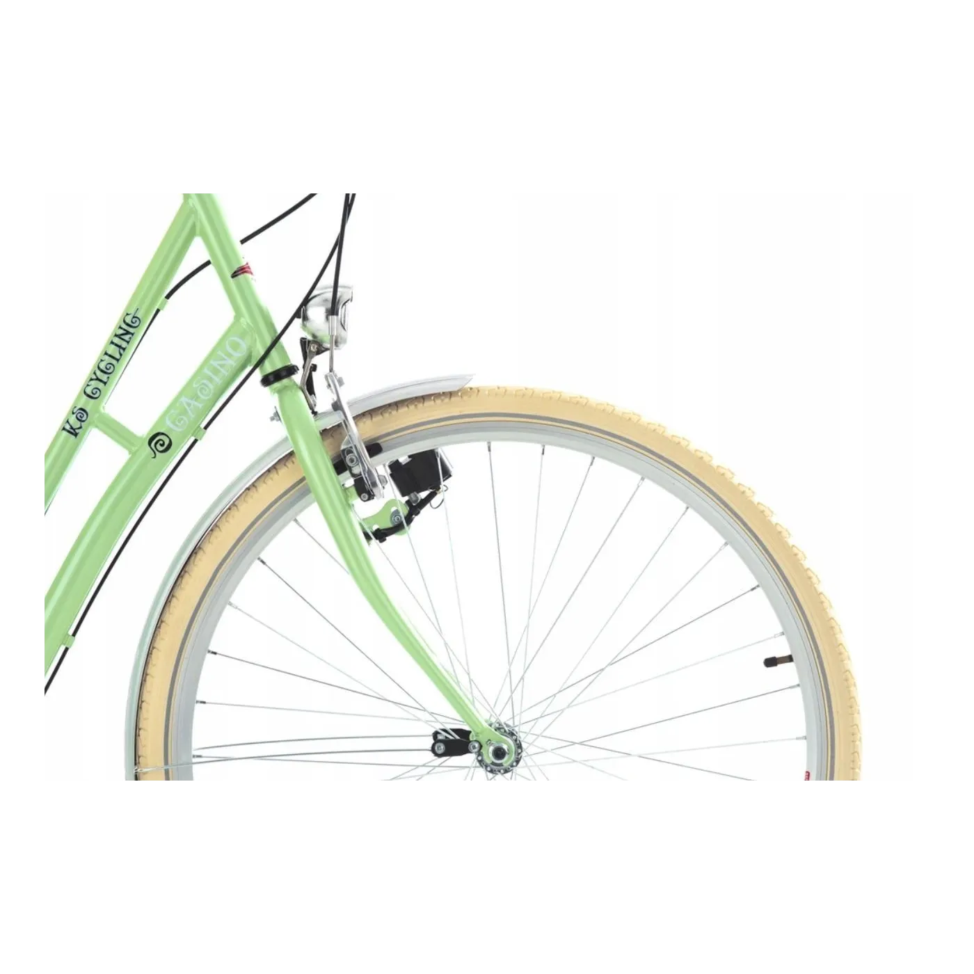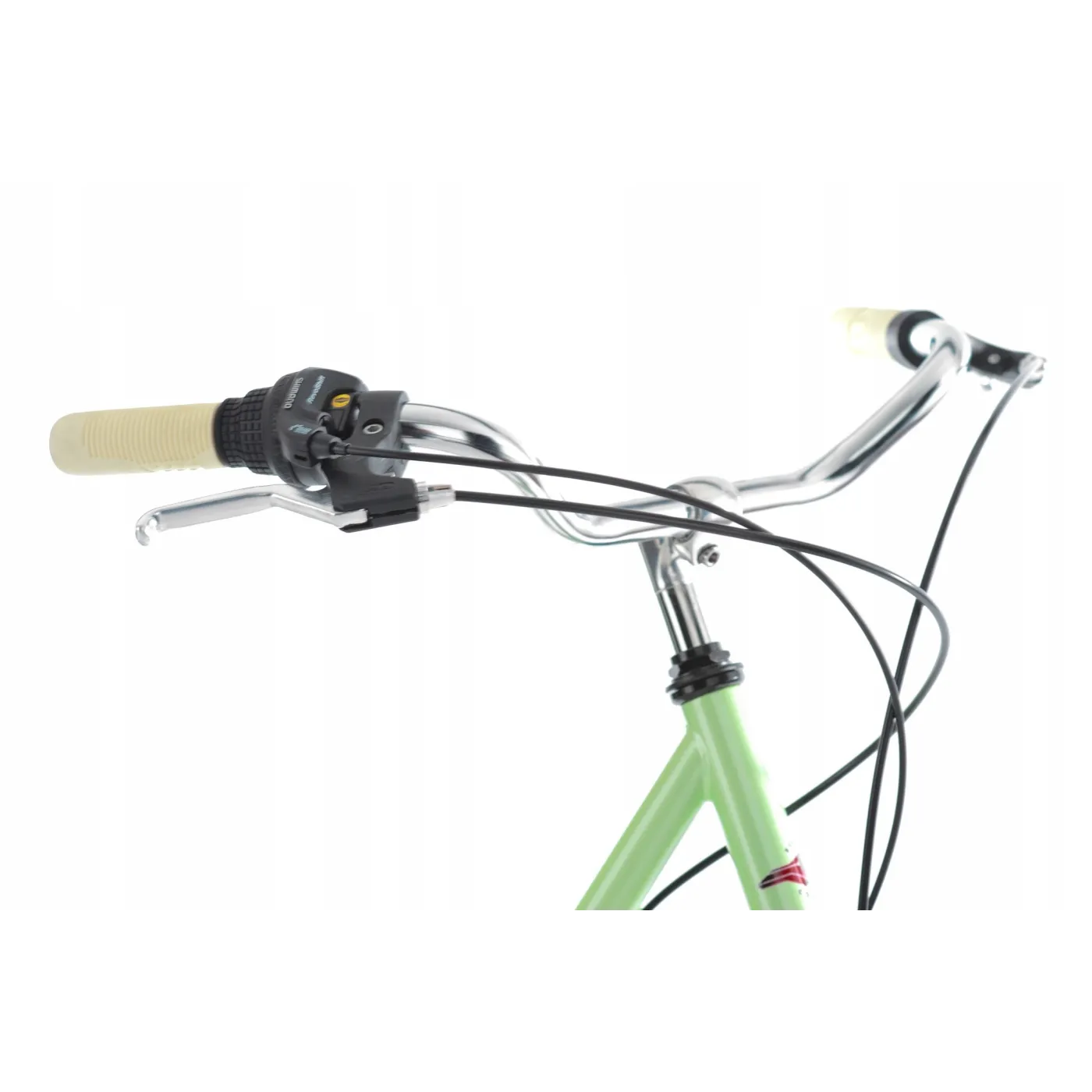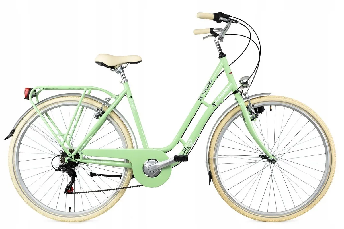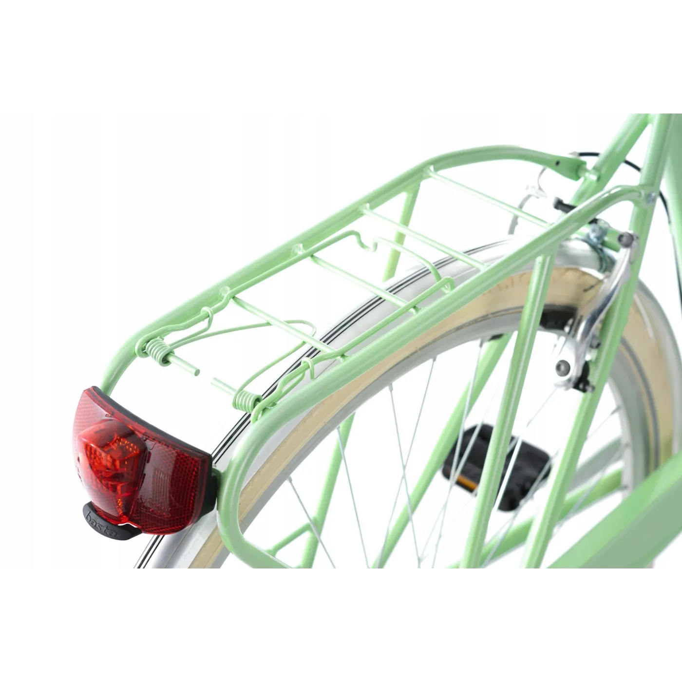 OpisKlasyczny rower miejski, w wyjątkowym zielonym kolorze sprawi, że wyróżnisz się pośród miejskiego tłumu. Wygodne siodełko, wysoka kierownica oraz duże koła zapewnią komfortową jazdę. Rower posiada hamulce V-brake oraz 6 biegów, dzięki czemu dostosuje się do każdych warunków. Ledowe światła zasilane przez dynamo pozwolą na bezpieczną jazdę nawet po zmroku.