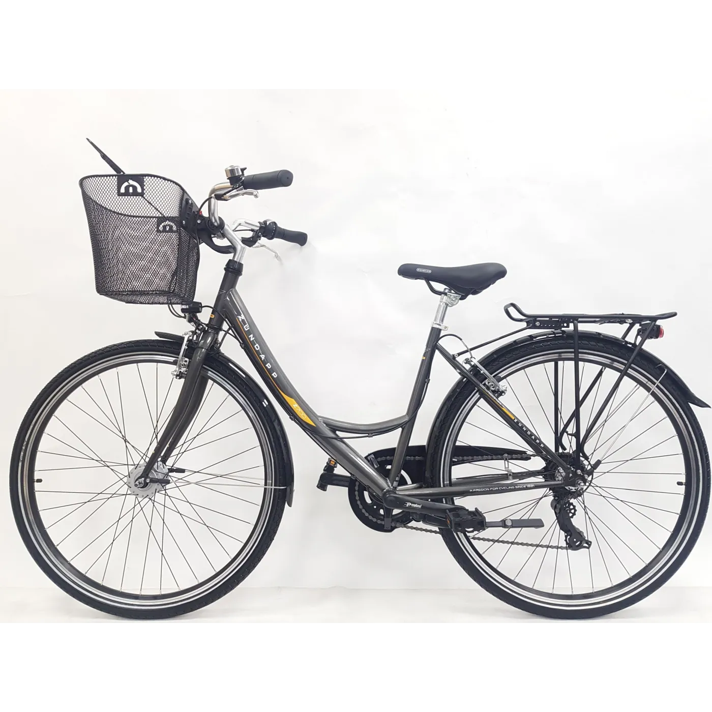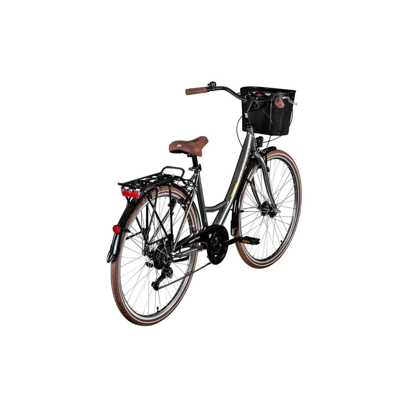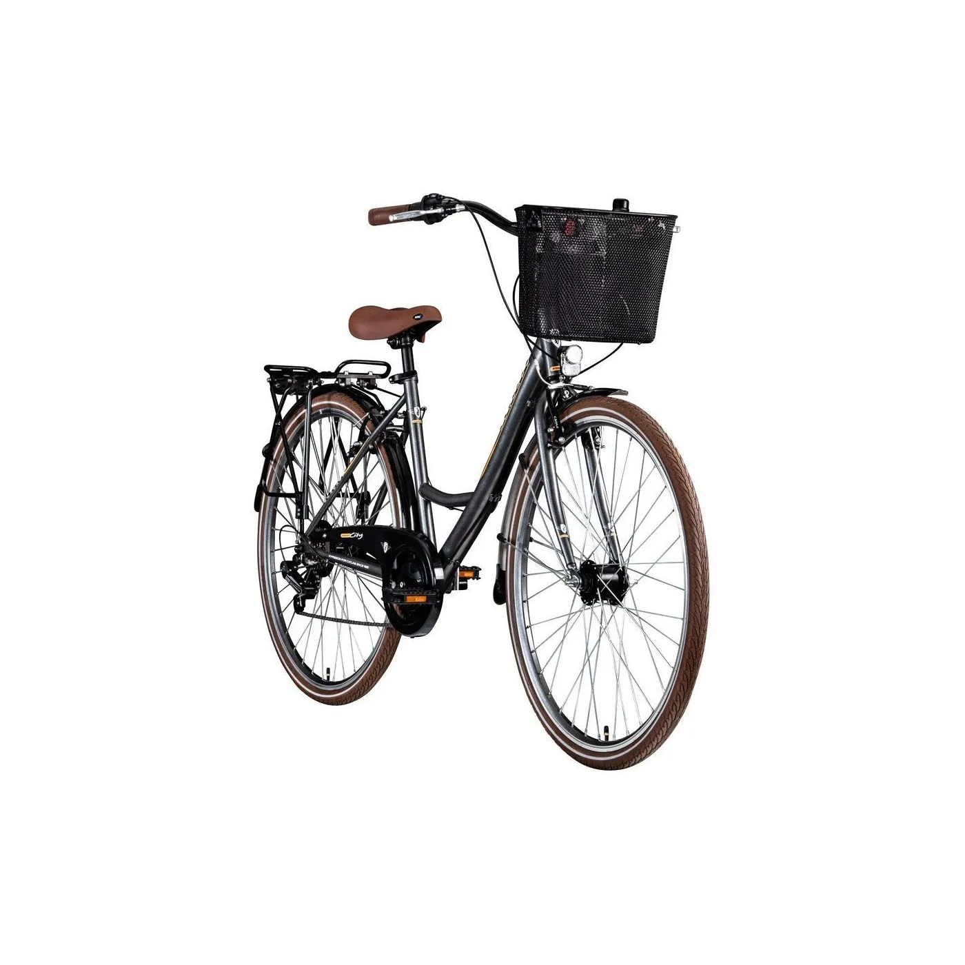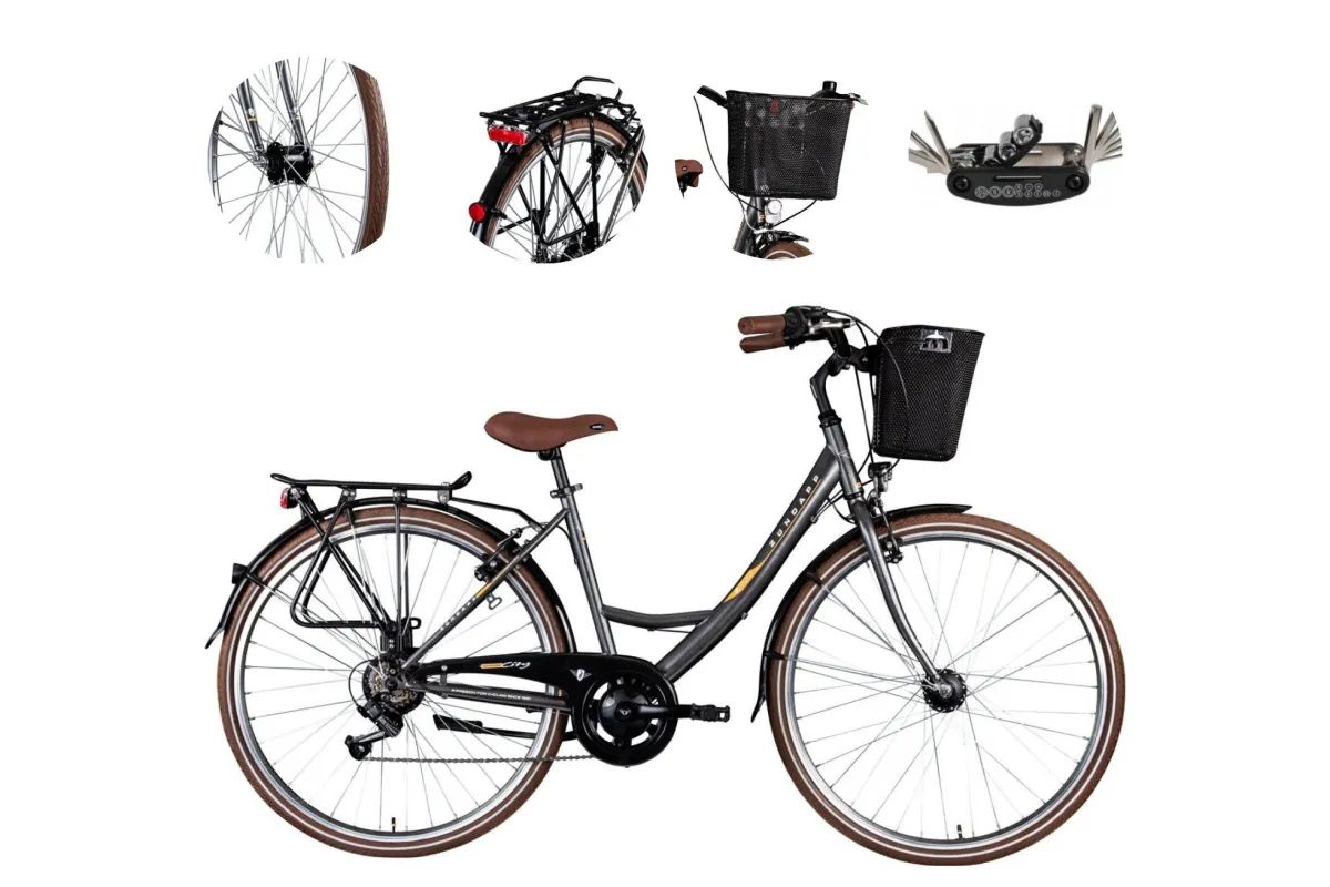 ✨ Błotniki chronią przed brudem drogowym, osłona łańcucha, bagażnik i przedni kosz zapewniają dużo miejsca do przechowywania, na przykład na zakupy. Kosz jest przymocowany do kierownicy za pomocą systemu zatrzaskowego i można go wyjąć w kilka sekund i łatwo zabrać ze sobą dzięki rączce.