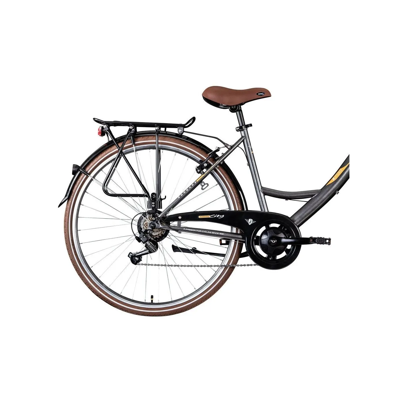 👉 Podstawą roweru jest solidna stalowa rama z niskim progiem, która umożliwia również wygodne wsiadanie i zsiadanie osobom o ograniczonej sprawności ruchowej. W połączeniu z zakrzywioną do tyłu kierownicą miejską sprzyja wyprostowanej pozycji siedzącej, która pozwala jeździć na rowerze przez długi czas bez objawów zmęczenia. Ponadto, siedzenie w pozycji wyprostowanej zapewnia dobrą orientację w ruchu ulicznym. Możesz wygodnie usiąść na szerokim wygodnym siodle. Ergonomicznie ukształtowane uchwyty z dużą powierzchnią styku zapobiegają drętwieniu dłoni.