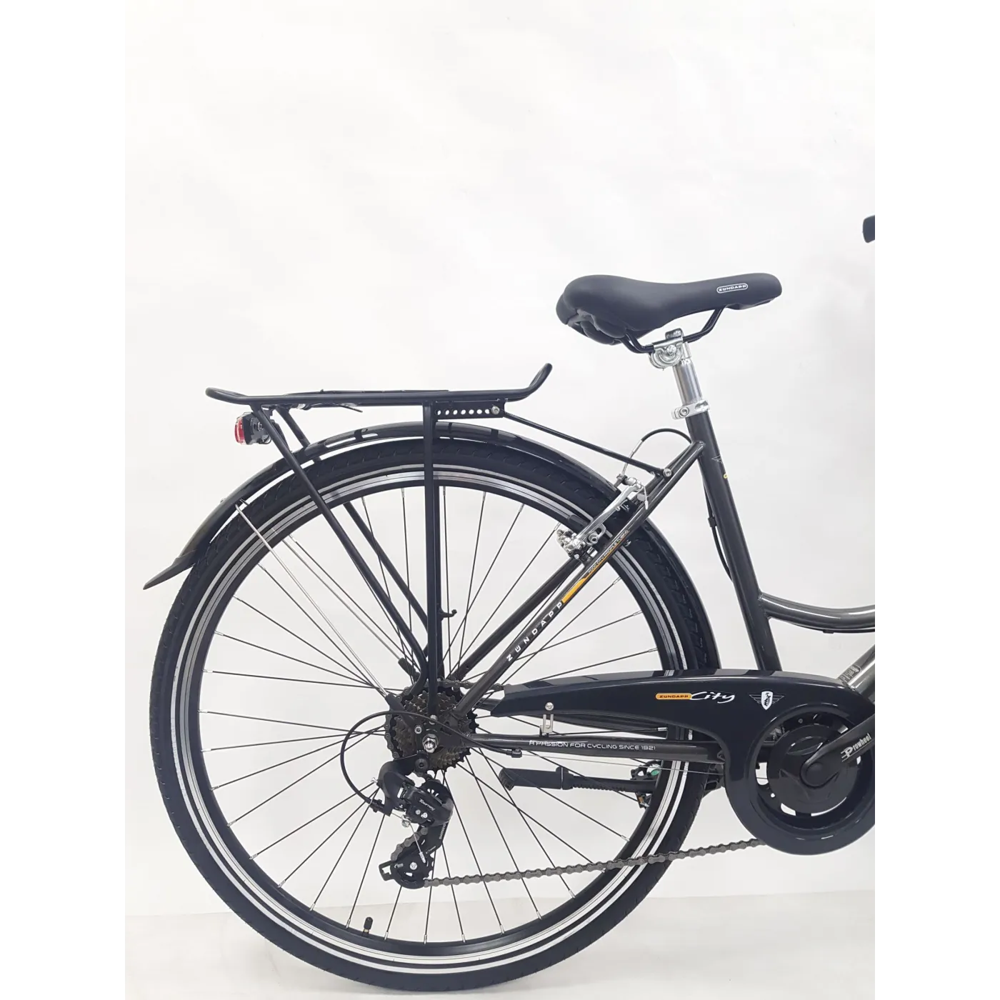 💡 Oświetlenie czerpie energię z dynamo w piaście na przednim kole. Z przodu reflektor Pico LED o jasności 15 luksów i tylne światło Basta SLIM sprawiają, że zawsze możesz dobrze oświetlić drogę.