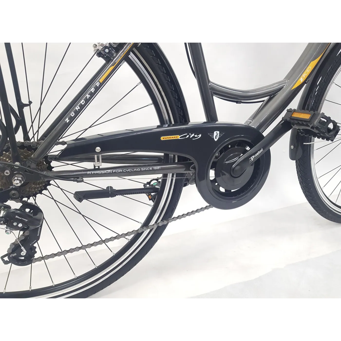 🚲 Z700 jeździ na płynnych oponach drogowych 700c x 40c, które dzięki dostosowanemu profilowi ślizgają się tylko po jezdni! Obwodowy pasek odblaskowy na obu oponach zwiększa widoczność w złych warunkach oświetleniowych i dlatego jest ważnym czynnikiem bezpieczeństwa. Opony są montowane na aluminiowych obręczach o podwójnych ściankach, które dzięki swojej konstrukcji z pustą komorą mają nieco sprężysty efekt i są ogólnie odporne na skręcanie i płynnie się poruszają.