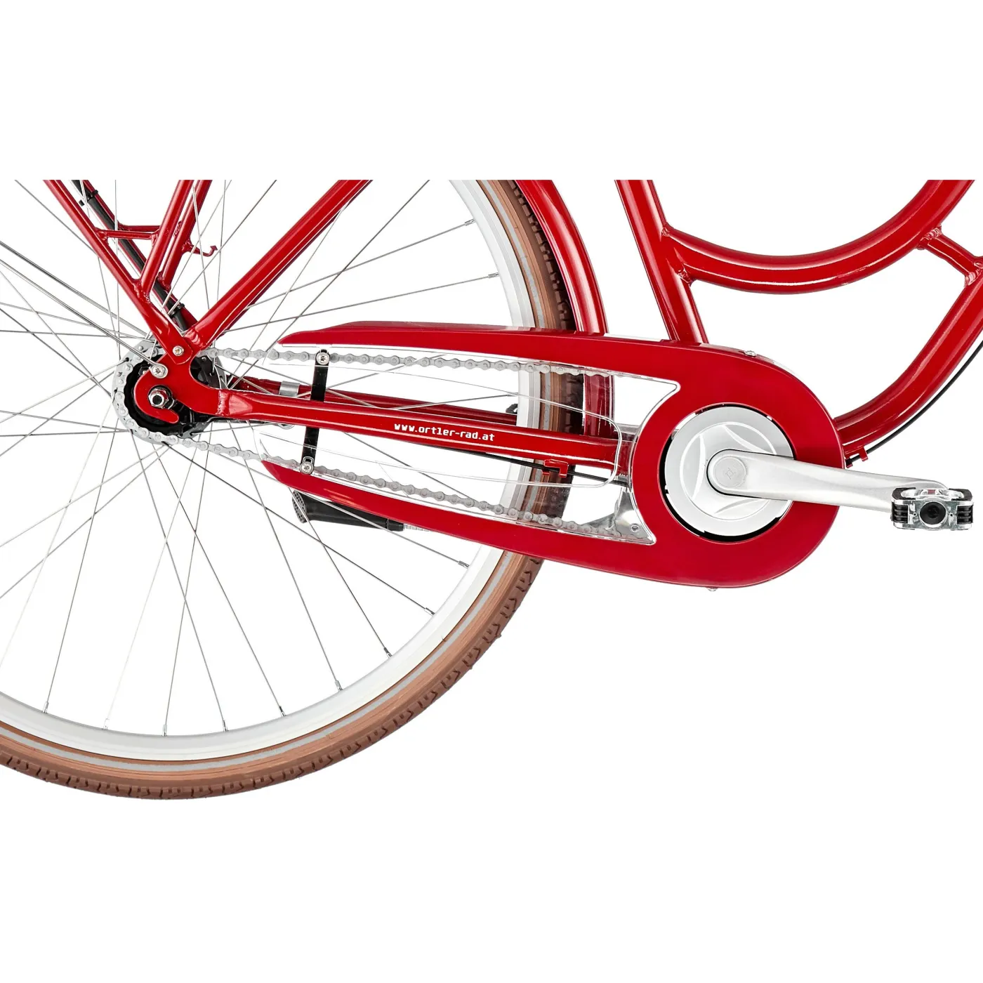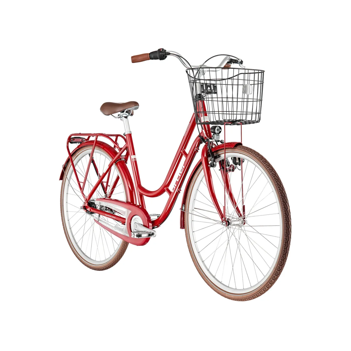 Czerwony, stylowy rower miejski z 7-biegową przerzutką Nexus to niezawodny towarzysz codziennych przejażdżek. Nisko opuszczona, zaokrąglona aluminiowa rama zapewnia komfort i elegancki wygląd całości. Idealnym wykończeniem estetycznej formy są dopasowane błotniki, osłona łańcucha i bagażnik w kolorze ramy. Wyprostowana pozycja siedząca oraz wygodne siodełko, zaokrąglona kierownica i ergonomiczne chwyty to gwarancja doskonałej widoczności i komfortu, które są tak ważne w dynamicznym ruchu miejskim. Dzięki dołączonemu do roweru pojemnemu koszykowi nad przednim kołem z łatwością i wygodnie przewieziesz niezbędny bagaż.