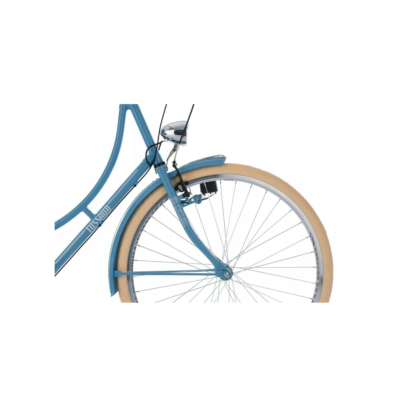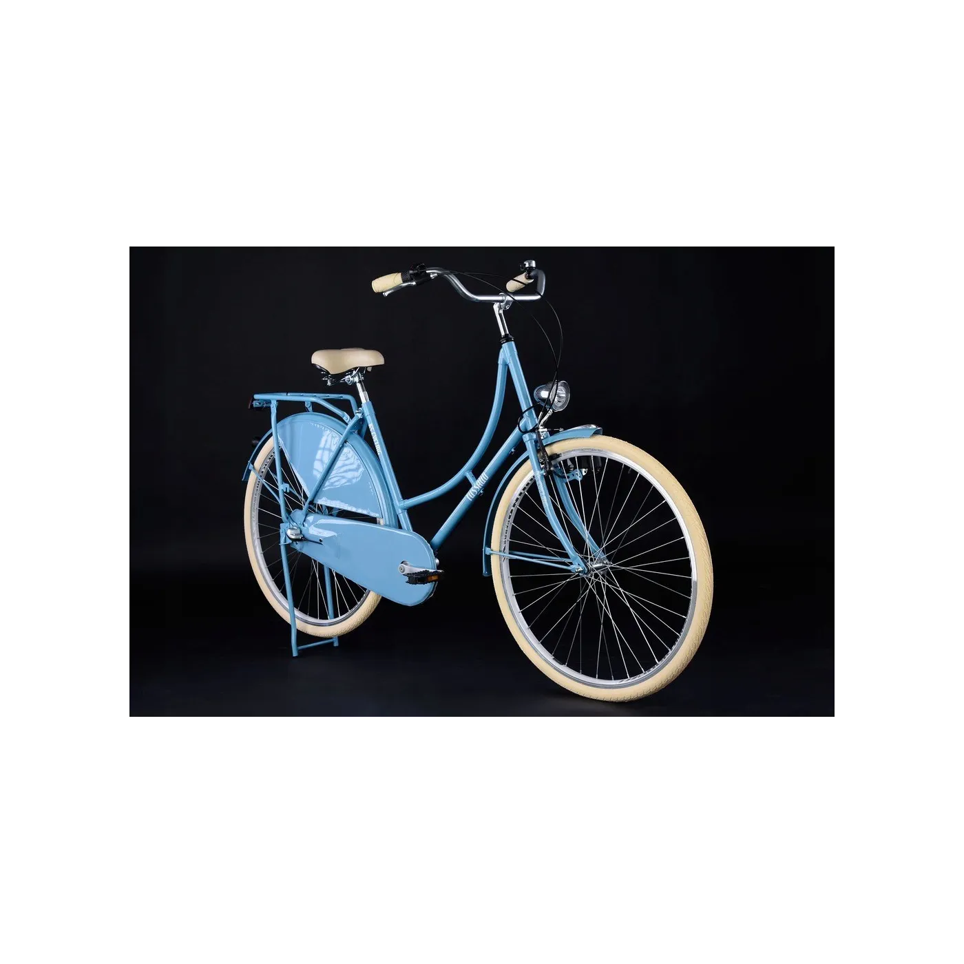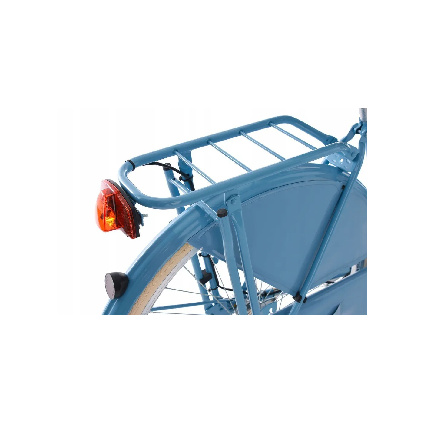 Ochraniacz na tylne koło i tylna podstawa są również charakterystyczne dla holenderskiego roweru. Wygodne siodełko miejskie, hamulec V z przodu i hamulec nożny, a także oświetlenie na dynamo dopełniają całości.