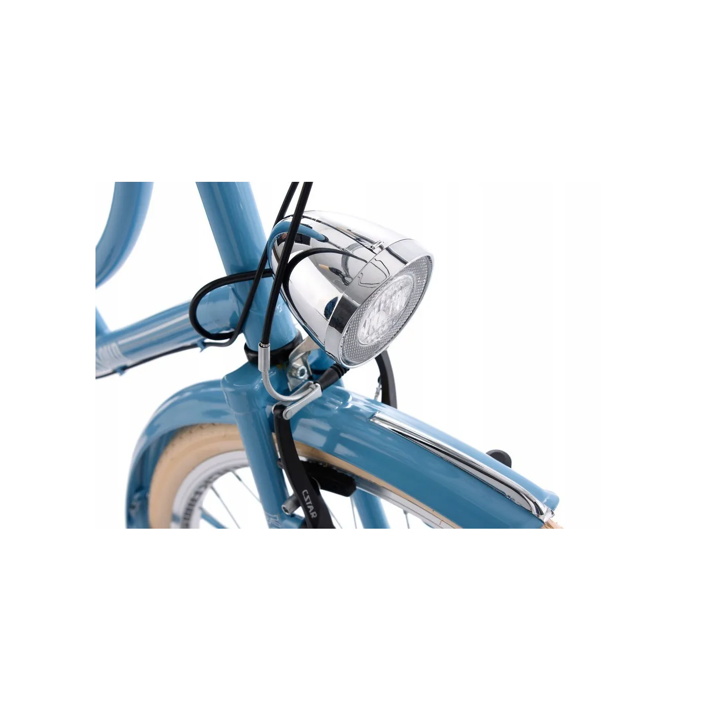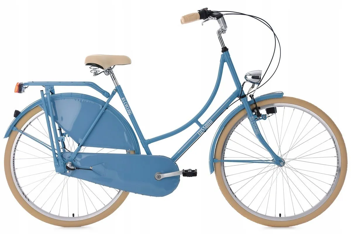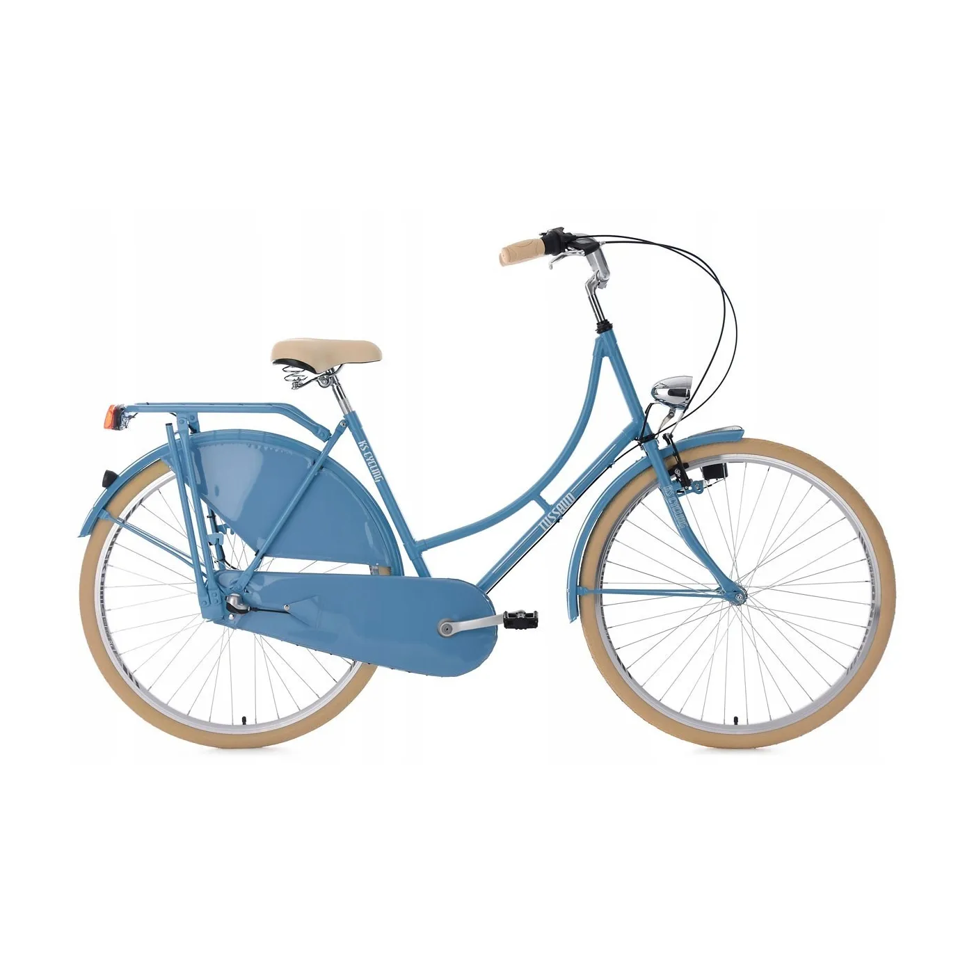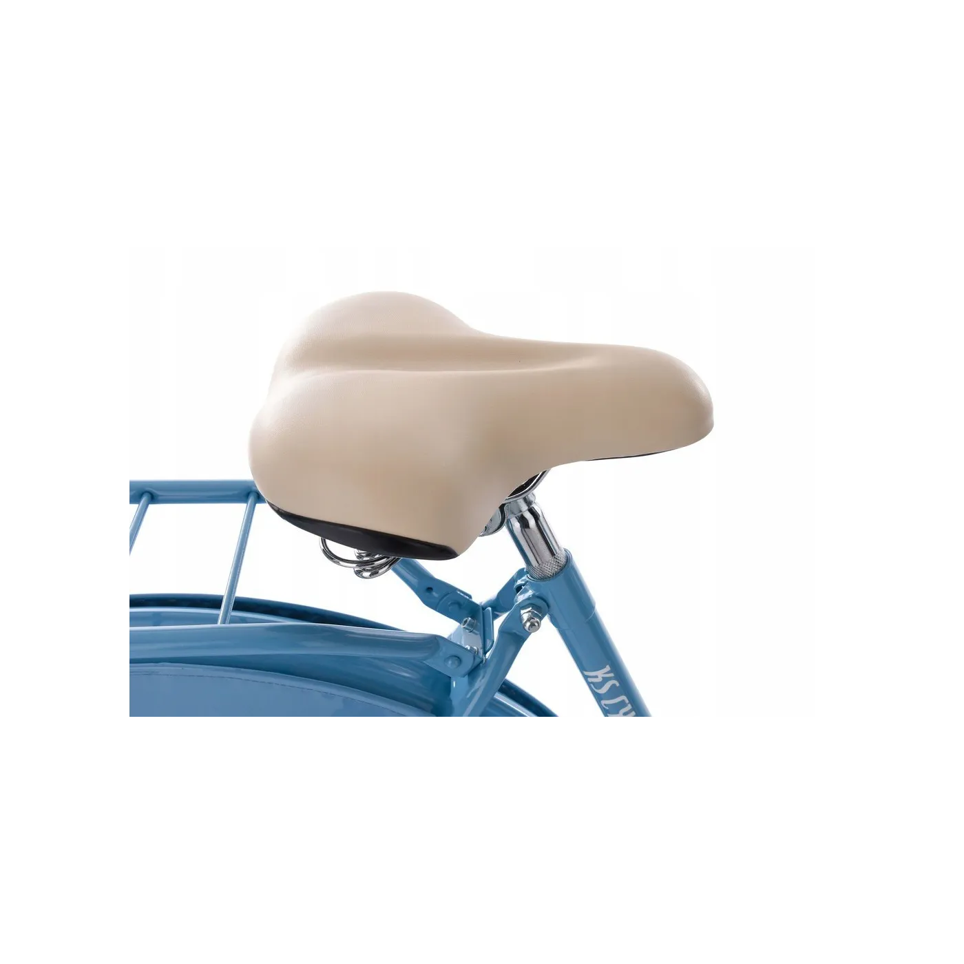 Ochraniacz na tylne koło i tylna podstawa są również charakterystyczne dla holenderskiego roweru. Wygodne siodełko miejskie, hamulec V z przodu i hamulec nożny, a także oświetlenie na dynamo dopełniają całości.