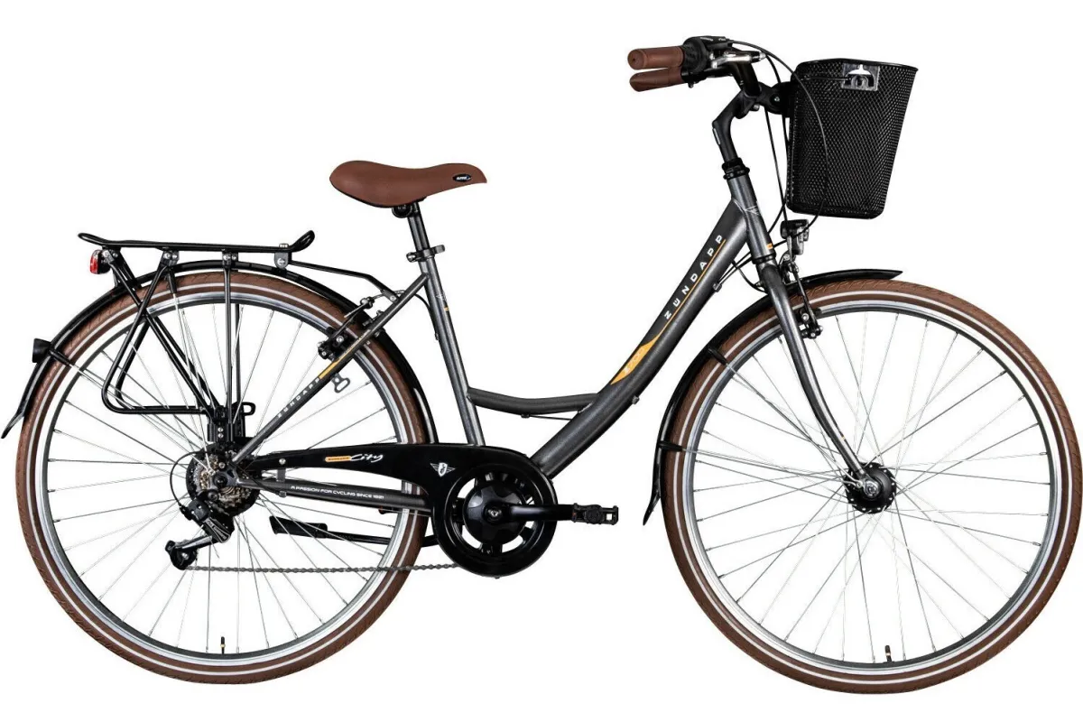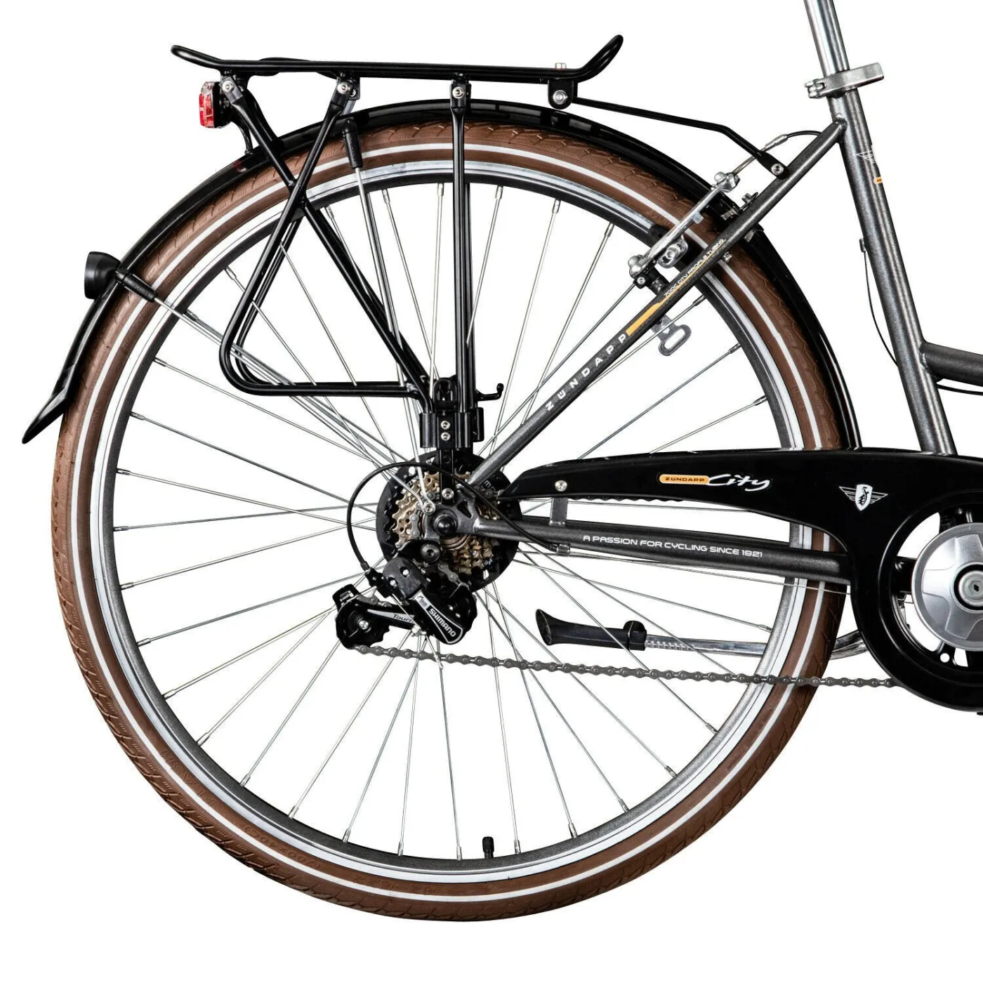 Błotniki chronią przed brudem drogowym, osłona łańcucha, bagażnik i przedni kosz zapewniają dużo miejsca do przechowywania, na przykład na zakupy. Kosz jest przymocowany do kierownicy za pomocą systemu zatrzaskowego i można go wyjąć w kilka sekund i łatwo zabrać ze sobą dzięki rączce.
