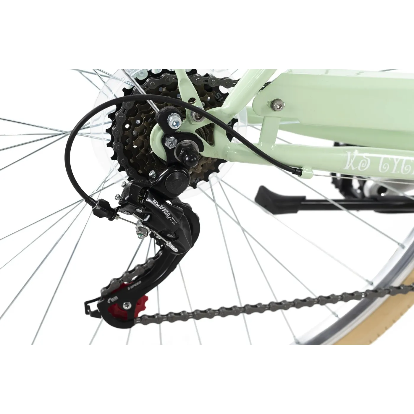 Damski rower miejski 28" CASINO od KS Cycling to nie tylko stylowy towarzysz na piękne letnie dni. Rama w modnej miętowej zieleni jest połączona z dopasowanymi kremowymi chwytami, siodełkiem i oponami, które nadają CASINO damski rower ma niepowtarzalny wygląd retro.