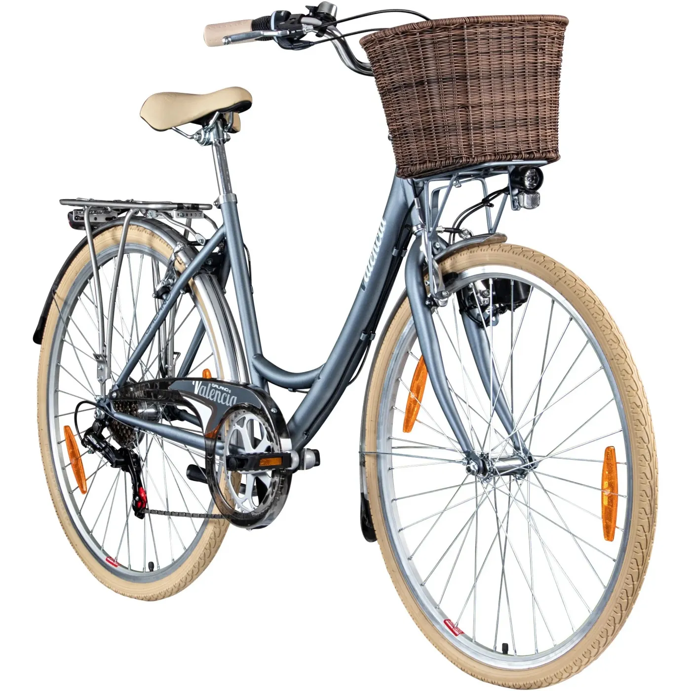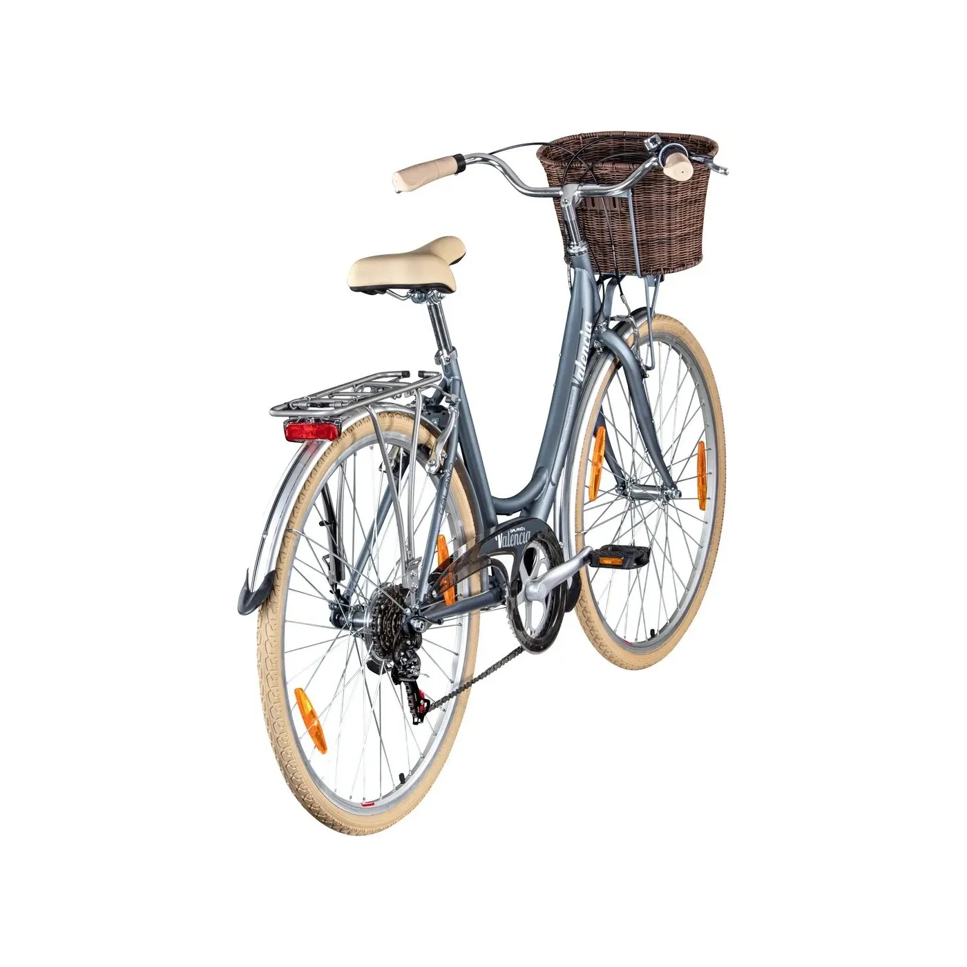 Sześciobiegowy system przełożeń damskiego roweru Valencia składa się z wytrzymałych, łatwych w utrzymaniu komponentów, które zapewniają płynną zmianę biegów. Dzięki temu rower nadaje się na każdą codzienną jazdę. Rower jest hamowany precyzyjnie hamulcami V-brake na obu kołach.