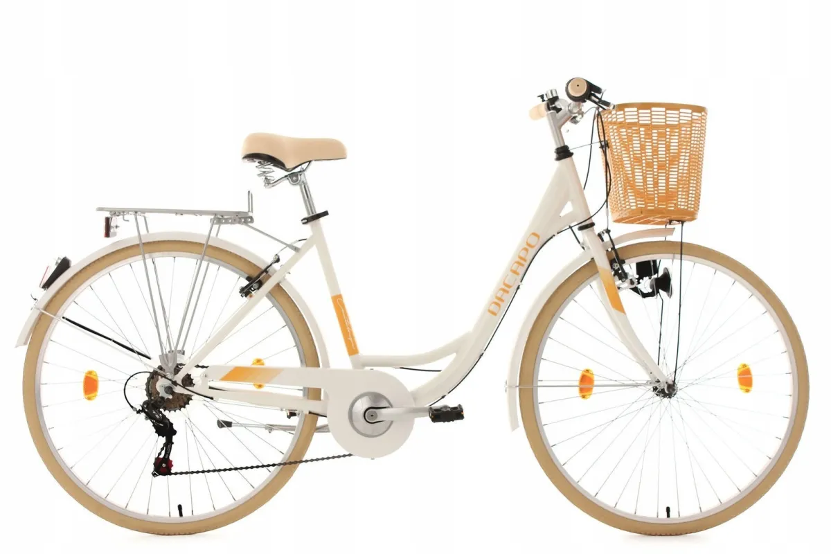 OpisWyjątkowy rower miejski Cantaloupe zachwyca swoimi jasnymi barwami oraz uroczym wyglądem.