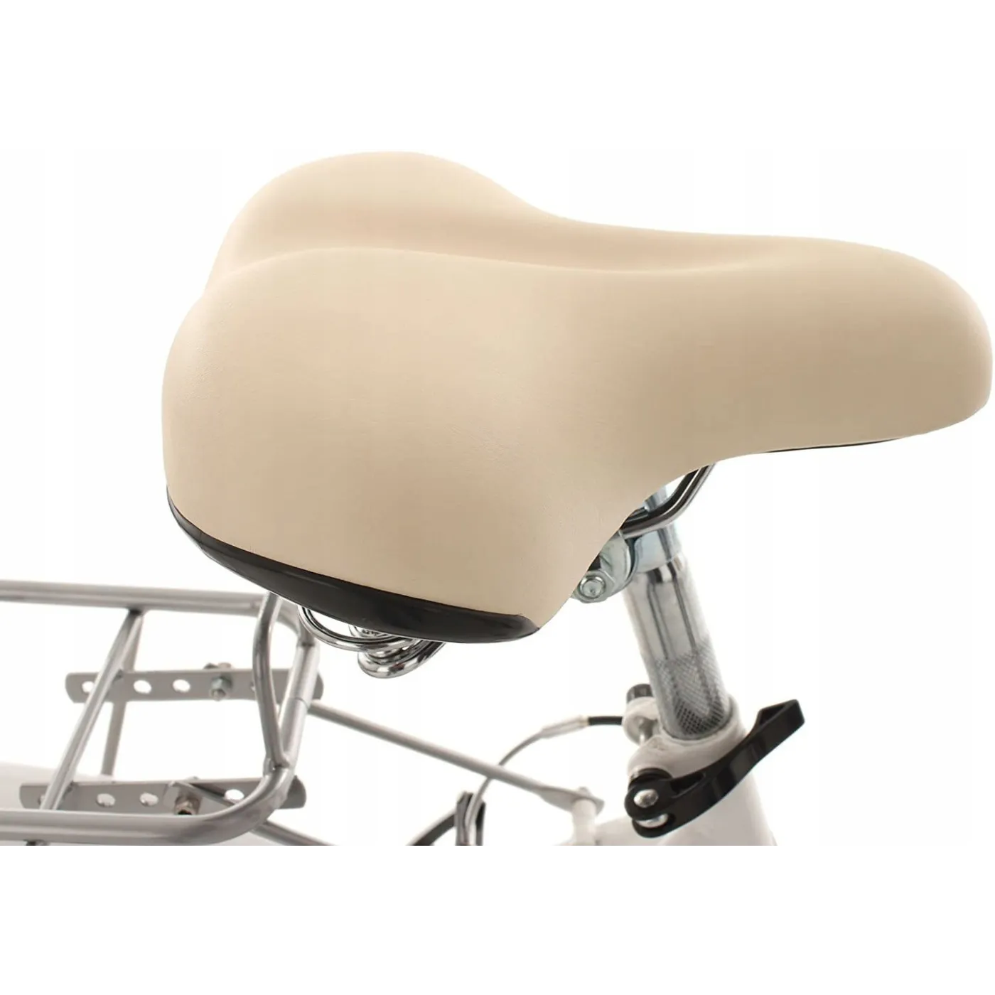 Duży, pakowny koszyk tylko dodaje mu niepowtarzalnego charakteru i sprawia, że wycieczka na zakupy tym rowerem to czysta przyjemność. Rower wyposażony został w wysokiej klasy przerzutki Shimano, zapewniające pełen komfort użytkowania go, niezależnie od rodzaju trasy, który wybierzemy. Dzięki halogenowym reflektorom zasilanym przez dynamo, możemy mieć pewność, że będziemy doskonałe widoczne na drodze.