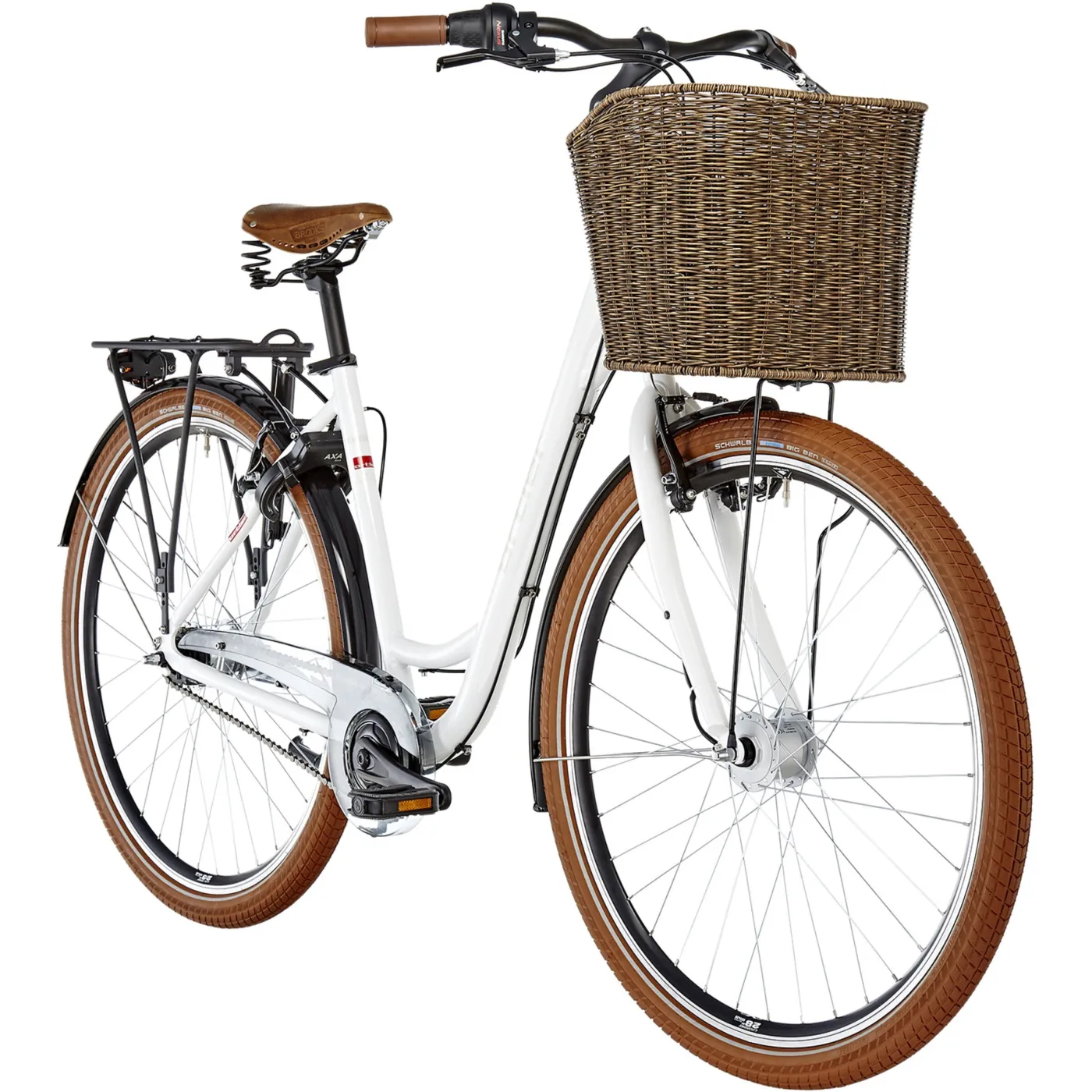 Aluminiowa rama, skórzane siodełko, szeroka miejska kierownica zapewniają prostą pozycję jazdy. Rower jest zwinny i wygodny. 7 biegów od Shimano Nexus pozwoli na lekką jazdę w miejskich, zróżnicowanych warunkach. Dynamo w przedniej piaście zasila dwa światła AXA LED, dzięki którym podróżowanie jest bezpieczne nawet w nocy. Dodatkowo rower posiada blokadę tylnego koła, dzięki czemu bezpiecznie zaparkujesz rower.