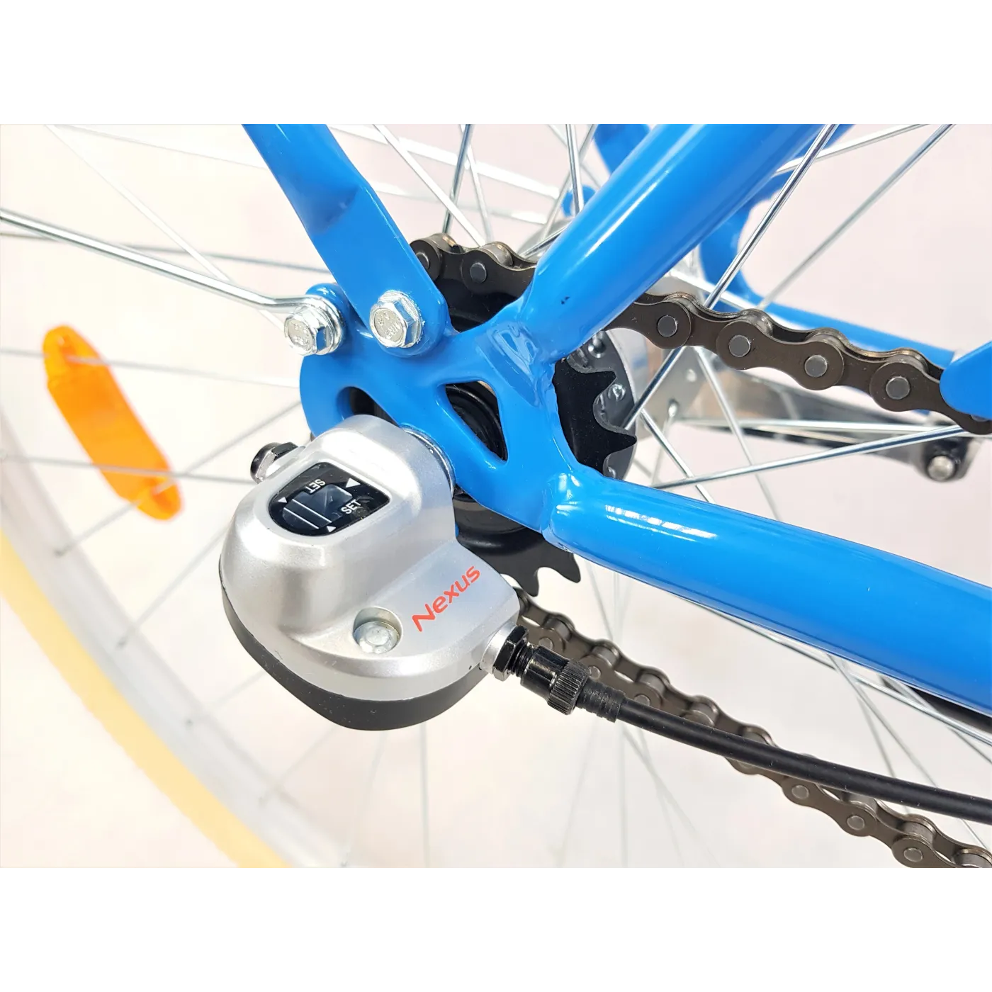 Do jazdy po mieście i pokonywania wzniesień bez problemów - dzięki trzem biegom w piaście Shimano Nexus. Taka liczba biegów jest w zupełności wystarczająca na miejskie warunki i by zapewnić odpowiednie dopasowanie prędkości. Detroit posiada kompletne wyposażenie: stabilne aluminiowe obręcze, mocny bagażnik, błotniki i osłona na łańcuch. Rower posiada hamulec v-brake z przodu oraz nożny (torpedo) z tyłu. Dzięki niskiemu wejściu i szerokiemu zakresowi regulacji kierownicy i siodełka rower świetnie pasuje zarówno dla niższych jak i wyższych osób.