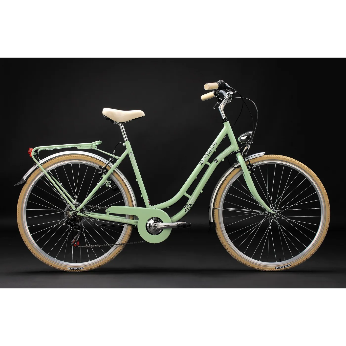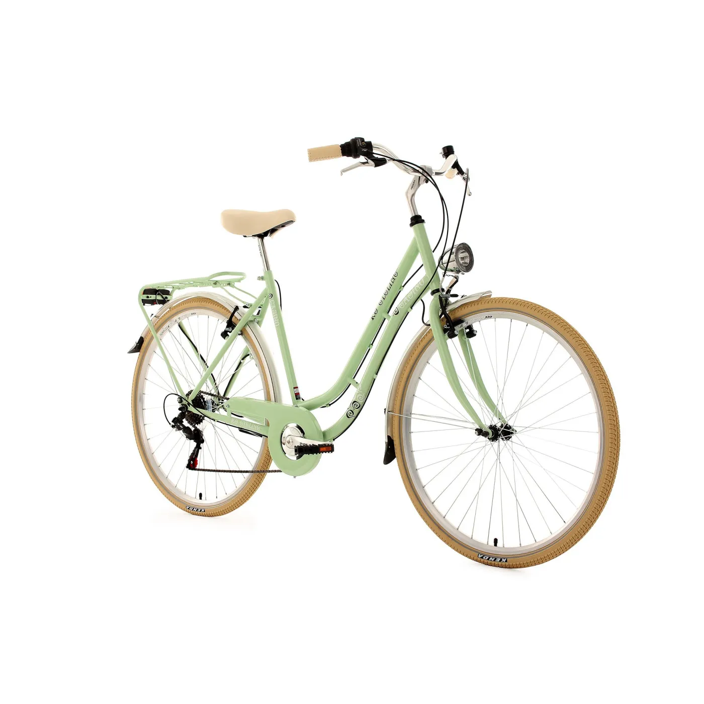 Kobiecy klasyczny rower Casino umili każdą miejską podróż! 6 biegów Shimano oraz hamulce V-brake pozwolą na komfortowe przemieszczanie się po ulicach, a reflektor zasilany przez dynamo oświetli drogę po zmroku.
