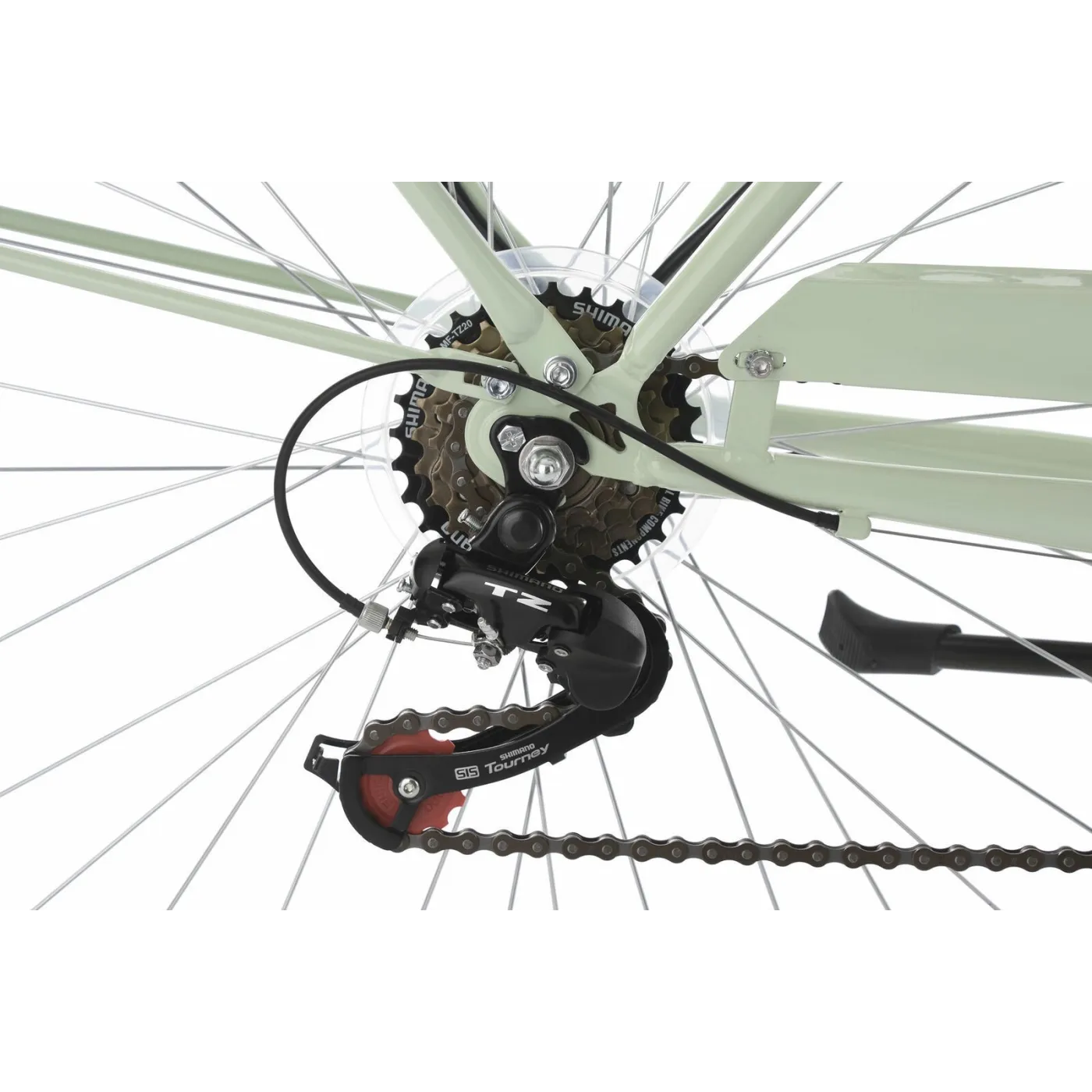 🛠️ Wyposażony w sześć biegów Shimano Revoshift, ten rower zapewnia płynne przełączanie między biegami, co pozwala na łatwe dostosowanie prędkości do warunków drogowych. Dodatkowo, jego wbudowane błotniki i bagażnik są praktycznym rozwiązaniem dla każdego rowerzysty.
