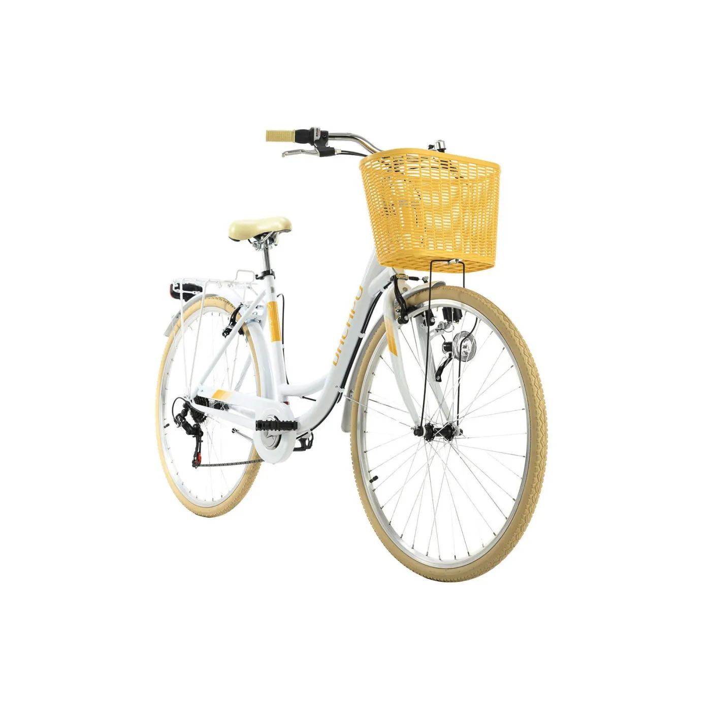 Rower wyposażony jest w niezbędne akcesoria, takie jak bagażnik, błotniki, osłona łańcucha oraz oświetlenie, które pozwoli na bezpieczną jazdę nawet po zmroku. Żółty kosz znajdujący się przy kierownicy jest nie tylko stylowym dodatkiem ale jest również bardzo praktyczny do przechowywania np. zakupów lub torebki. Pełny pakiet akcesoriów sprawia, że jest to idealny partner na codzienne wycieczki.