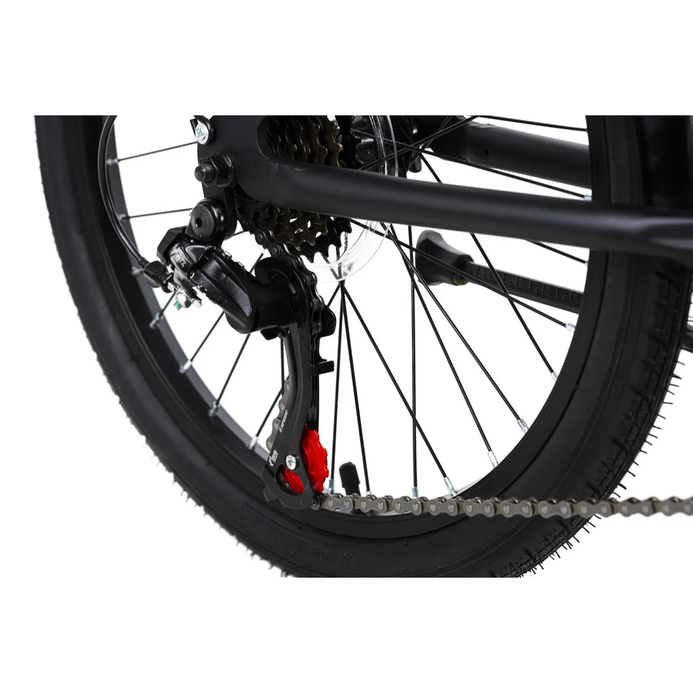 Rower z aluminiową ramą posiada dwukrotny system składania, dzięki czemu można go złożyć do niewielkich wymiarów. Dodatkowo jedną ręką można również w szybki sposób wypiąć sztycę i zaoszczędzić jeszcze więcej miejsca. Idealny do przechowywania w bagażniku.