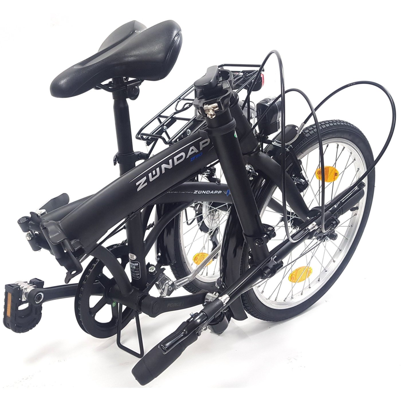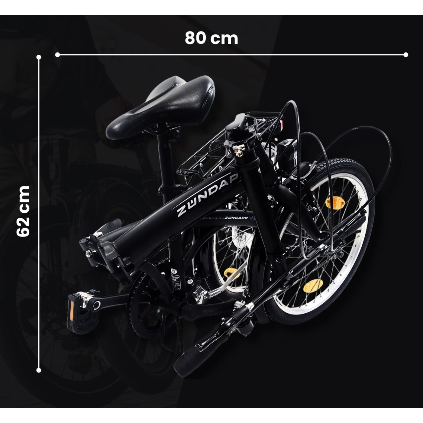 📏 ZF20 Speed Folder ma dwa łatwe w użyciu mechanizmy składania w stalowej ramie, we wsporniku i w pedale. Dzięki temu przemyślanemu mechanizmowi składania możesz złożyć swój rower do poręcznego rozmiaru 85 cm x 35 cm x 62 cm w ciągu kilku sekund. Oznacza to, że w razie potrzeby rower zmieści się również w standardowych bagażnikach.