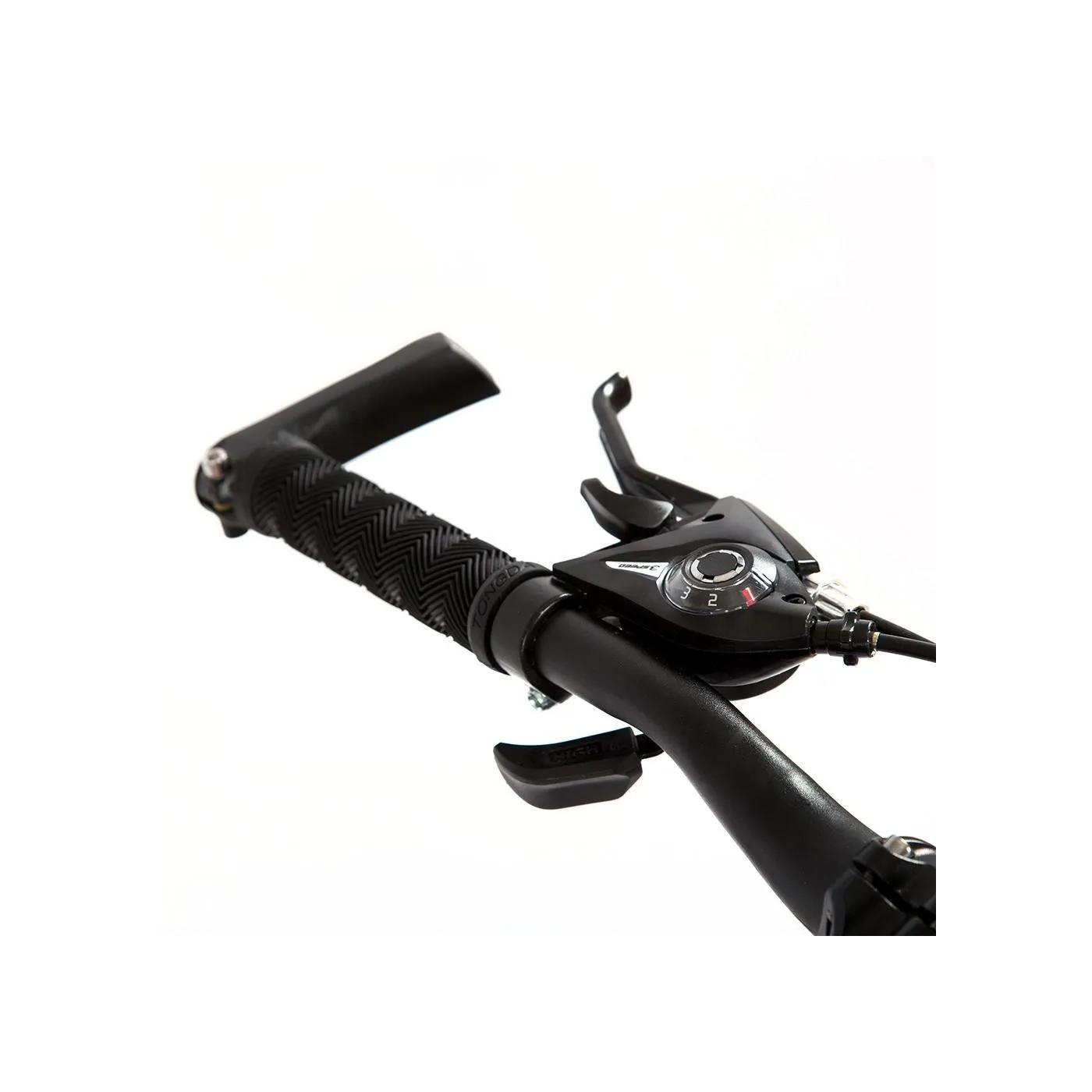 Stalowa rama, z trójwartstwowym kryciem, odporna na rdzę, jest solidna i trwała. Konstrukcja systemu podwójnych amortyzatorów, elastyczny przedni widelec oraz funkcja amortyzacji widelca zapewniają maksymalny komfort jazdy. Podwójne hamulce tarczowe z przodu i z tyłu oraz 21 biegów od Shimano sprawią, że jazda będzie wygodna w każdym terenie. Dodatkowym atutem jest to, że rower jest składany, dlatego można go transportować nawet w bagażniku. Ponad to nietuzinkowy wygląd sprawia, że rower przyciąga wzrok.