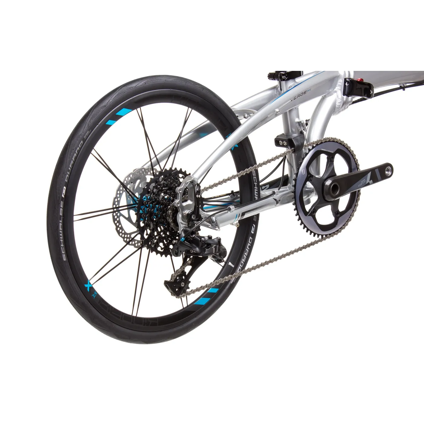 Ultralekki rower zapewniający szybkość i mobilność, który składa się w przeciągu 10 sekund to po prostu marzenie. Verge X11 waży 10,2 kg i jest jedną z najlżejszych propozycji rowerów składanych, kaseta SRAM “XG1150” z jedenastoma prędkościami w połączeniu z tarczą 52 zębów zapewnia szeroki wachlarz możliwości. Przerzutka SRAM zapewnia precyzyjną zmianę biegów, przedni widelec hydroforming Tarsus oraz hamulce hydrauliczne tarczowe dopełniają całości.. Verge można go łatwo przechować i transportować.