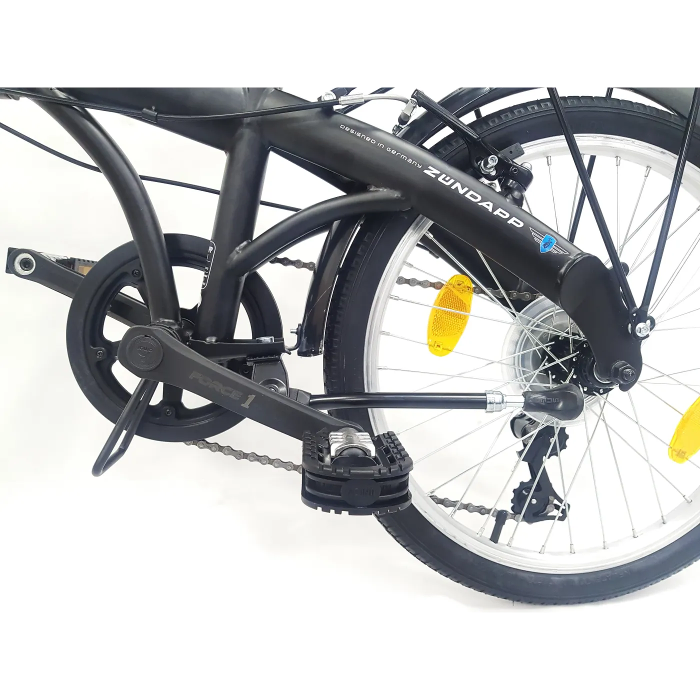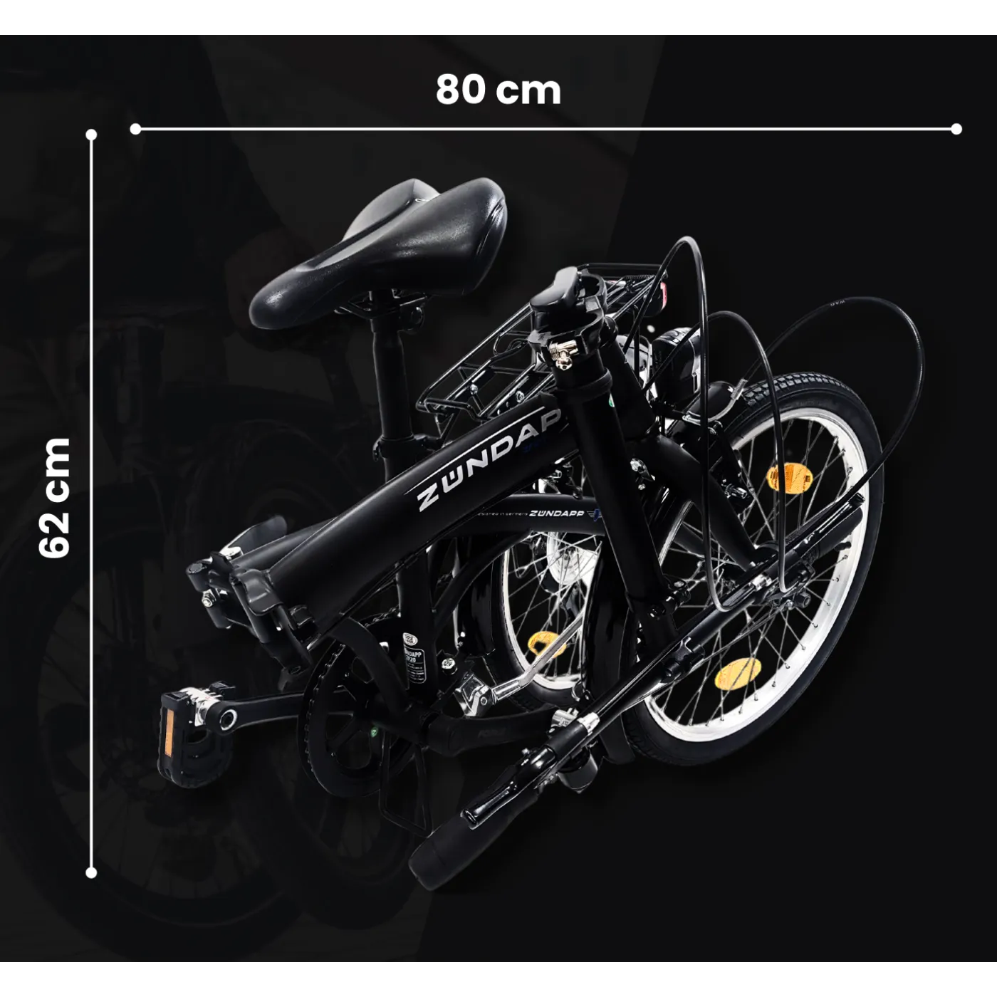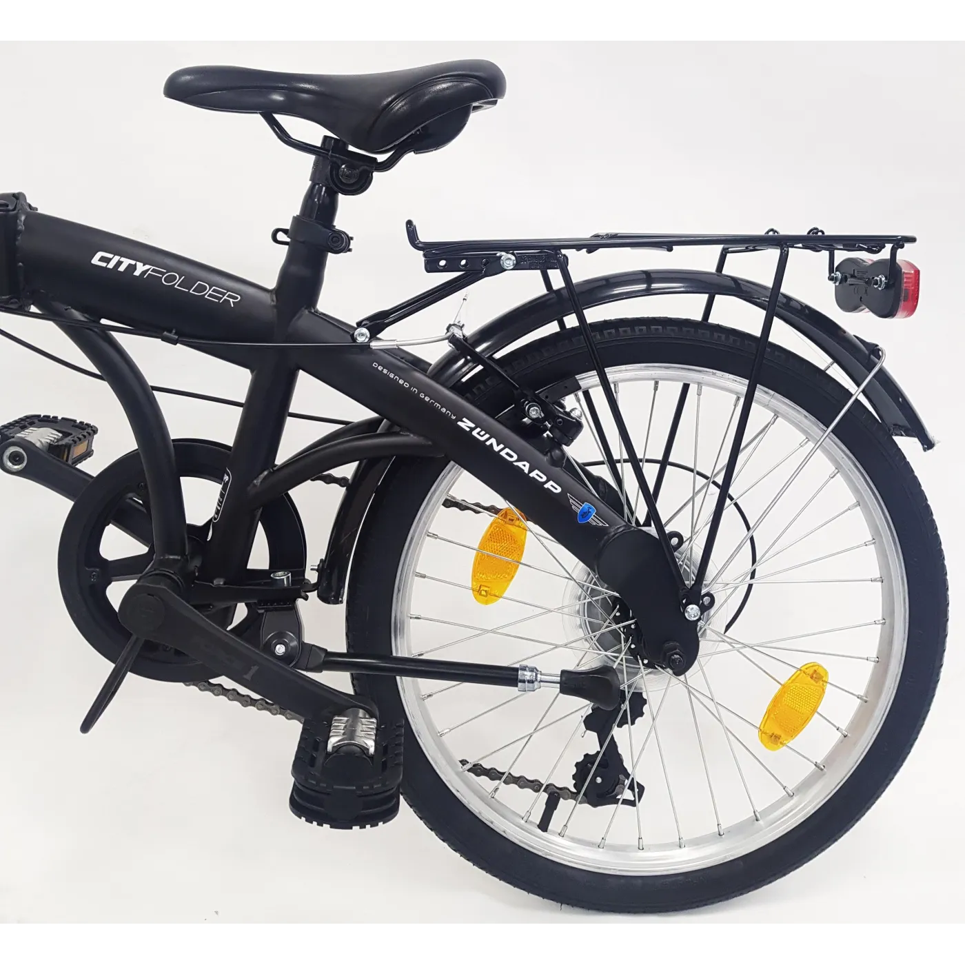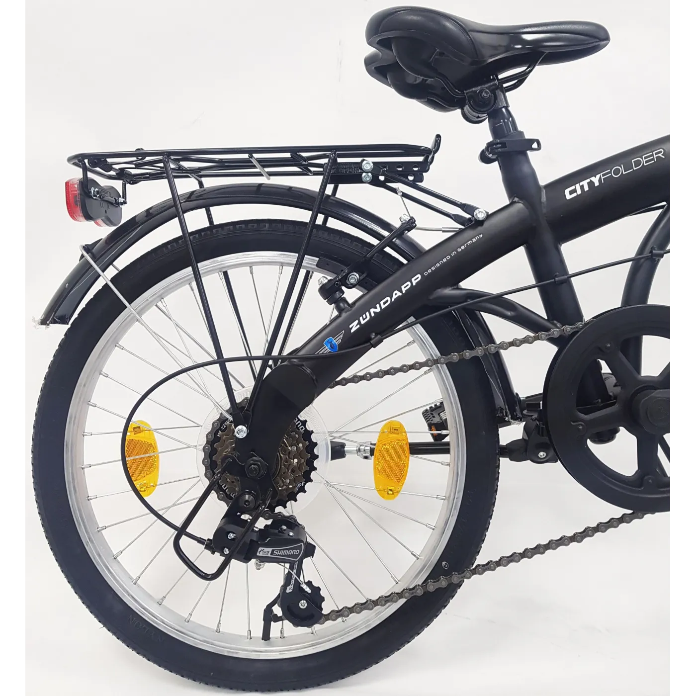 📏 ZF20 City Folder ma dwa łatwe w użyciu mechanizmy składania w stalowej ramie, we wsporniku i w pedale. Dzięki temu przemyślanemu mechanizmowi składania możesz złożyć swój rower do poręcznego rozmiaru 85 cm x 35 cm x 62 cm w ciągu kilku sekund. Oznacza to, że w razie potrzeby rower zmieści się również w standardowych bagażnikach.