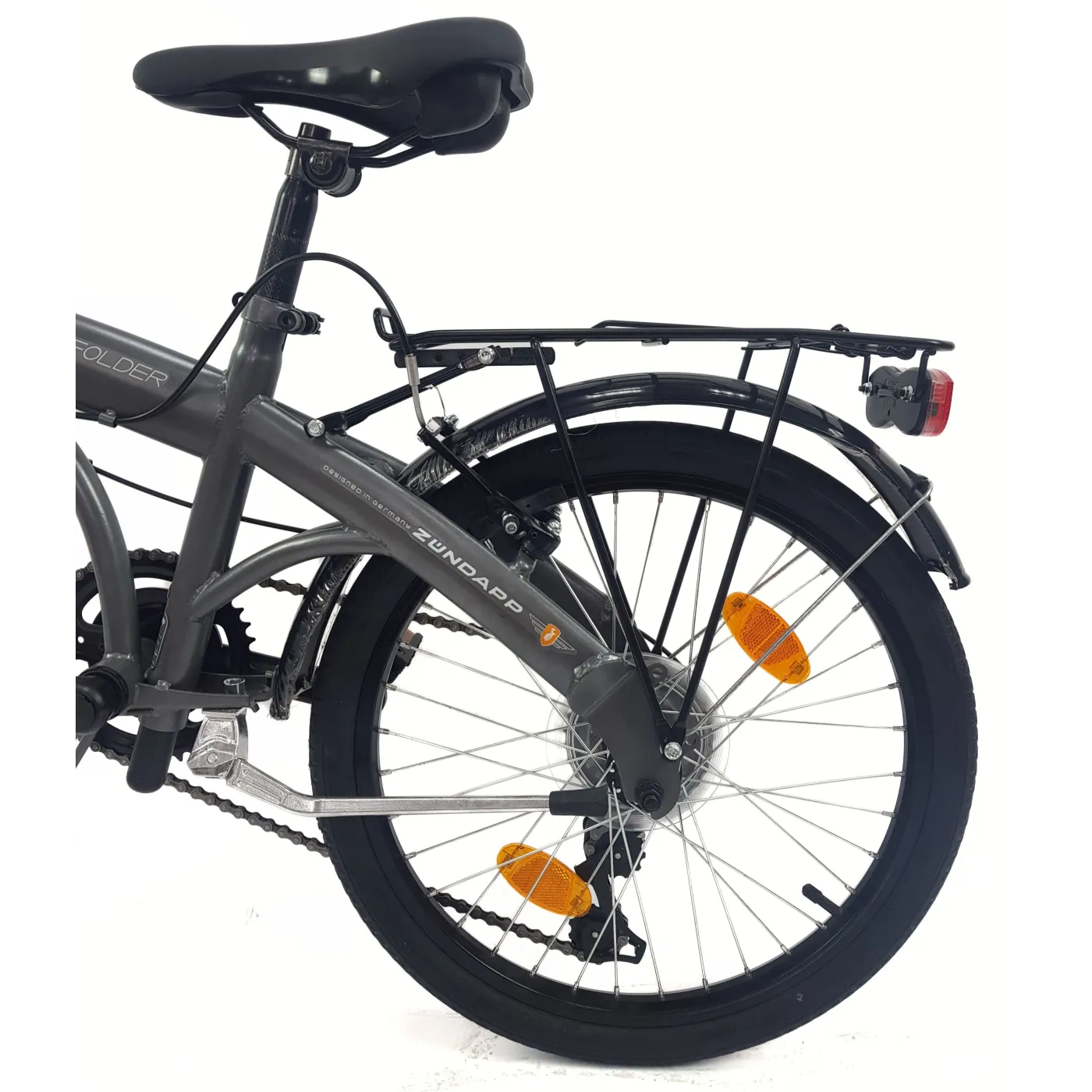 📏 ZF20 Speed Folder ma dwa łatwe w użyciu mechanizmy składania w stalowej ramie, we wsporniku i w pedale. Dzięki temu przemyślanemu mechanizmowi składania możesz złożyć swój rower do poręcznego rozmiaru 80 cm x 32 cm x 62 cm w ciągu kilku sekund. Oznacza to, że w razie potrzeby rower zmieści się również w standardowych bagażnikach.