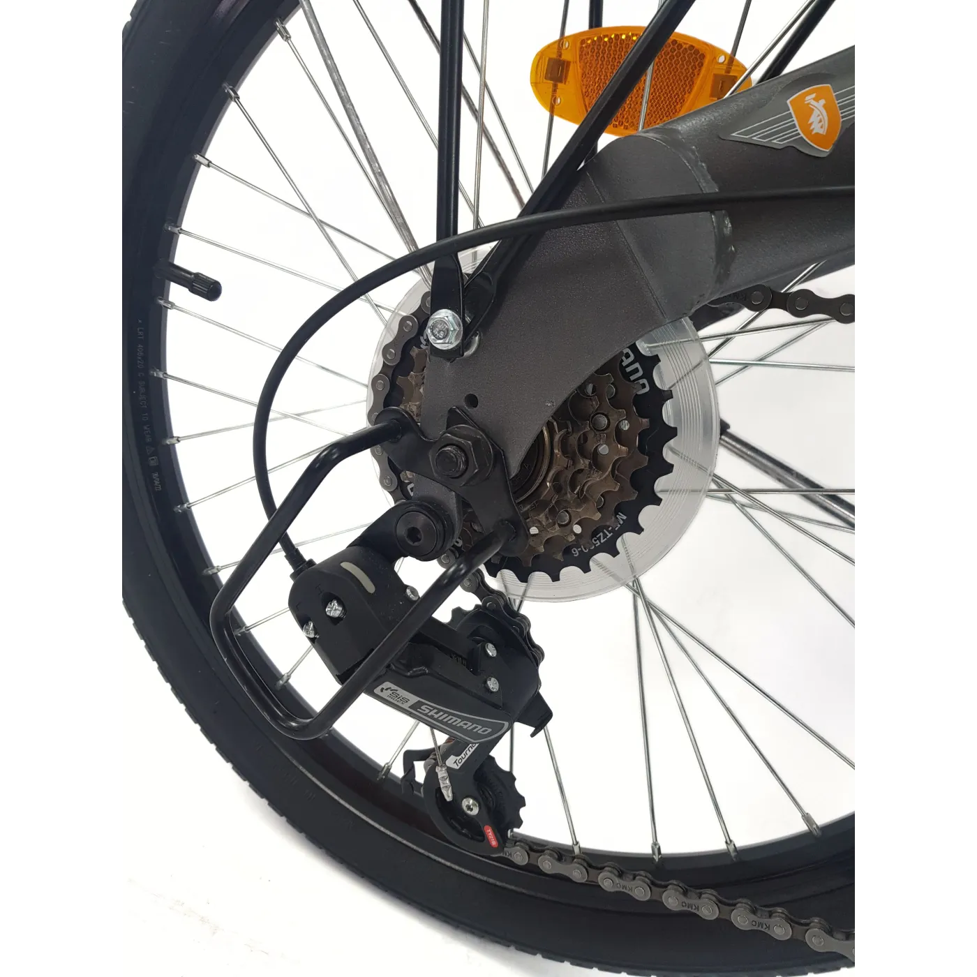 👉 ZF20 Speed Folder jest wyposażony w 6-biegowy napęd łańcuchowy, który zabierze Cię w dowolne miejsce w mieście. Z łatwością wybierasz biegi za pomocą manetki Shimano RevoShift z rękojeścią obrotową. Opony 20" x 1,75" o profilu ulicznym zapewniają dobre właściwości jezdne do użytku miejskiego.