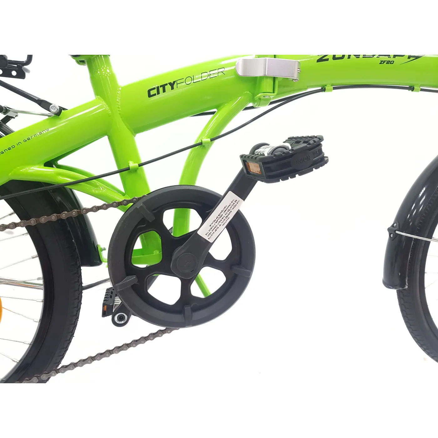 👉 ZF20 Speed Folder jest wyposażony w 6-biegowy napęd łańcuchowy, który zabierze Cię w dowolne miejsce w mieście. Z łatwością wybierasz biegi za pomocą manetki Shimano RevoShift z rękojeścią obrotową. Opony 20" x 1,75" o profilu ulicznym zapewniają dobre właściwości jezdne do użytku miejskiego.