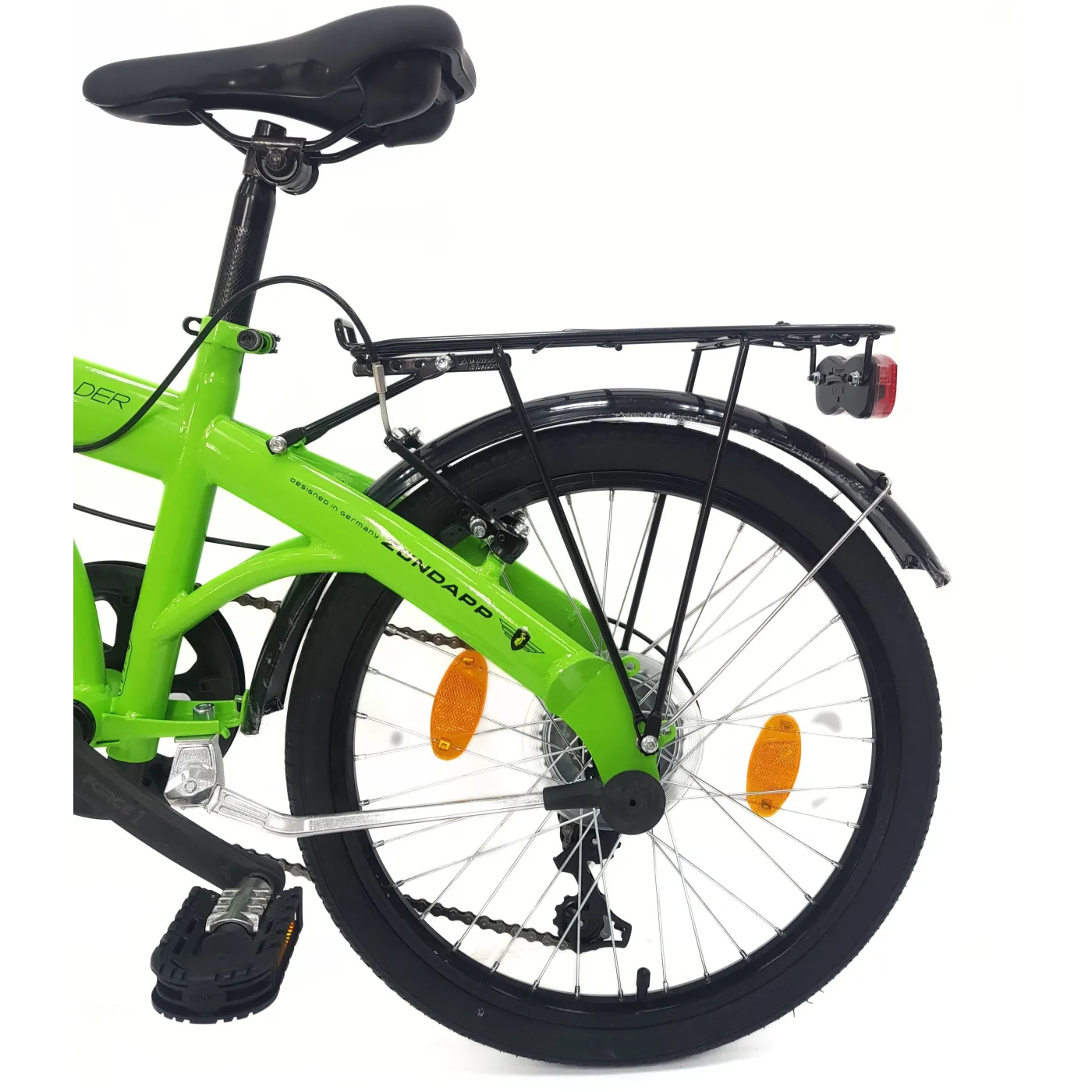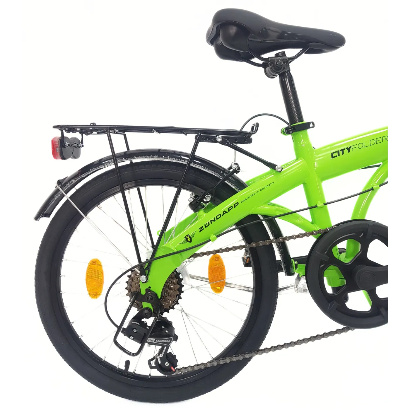 📏 ZF20 City Folder ma dwa łatwe w użyciu mechanizmy składania w stalowej ramie, we wsporniku i w pedale. Dzięki temu przemyślanemu mechanizmowi składania możesz złożyć swój rower do poręcznego rozmiaru 80 cm x 62 cm x 32 cm w ciągu kilku sekund. Oznacza to, że w razie potrzeby rower zmieści się również w standardowych bagażnikach.