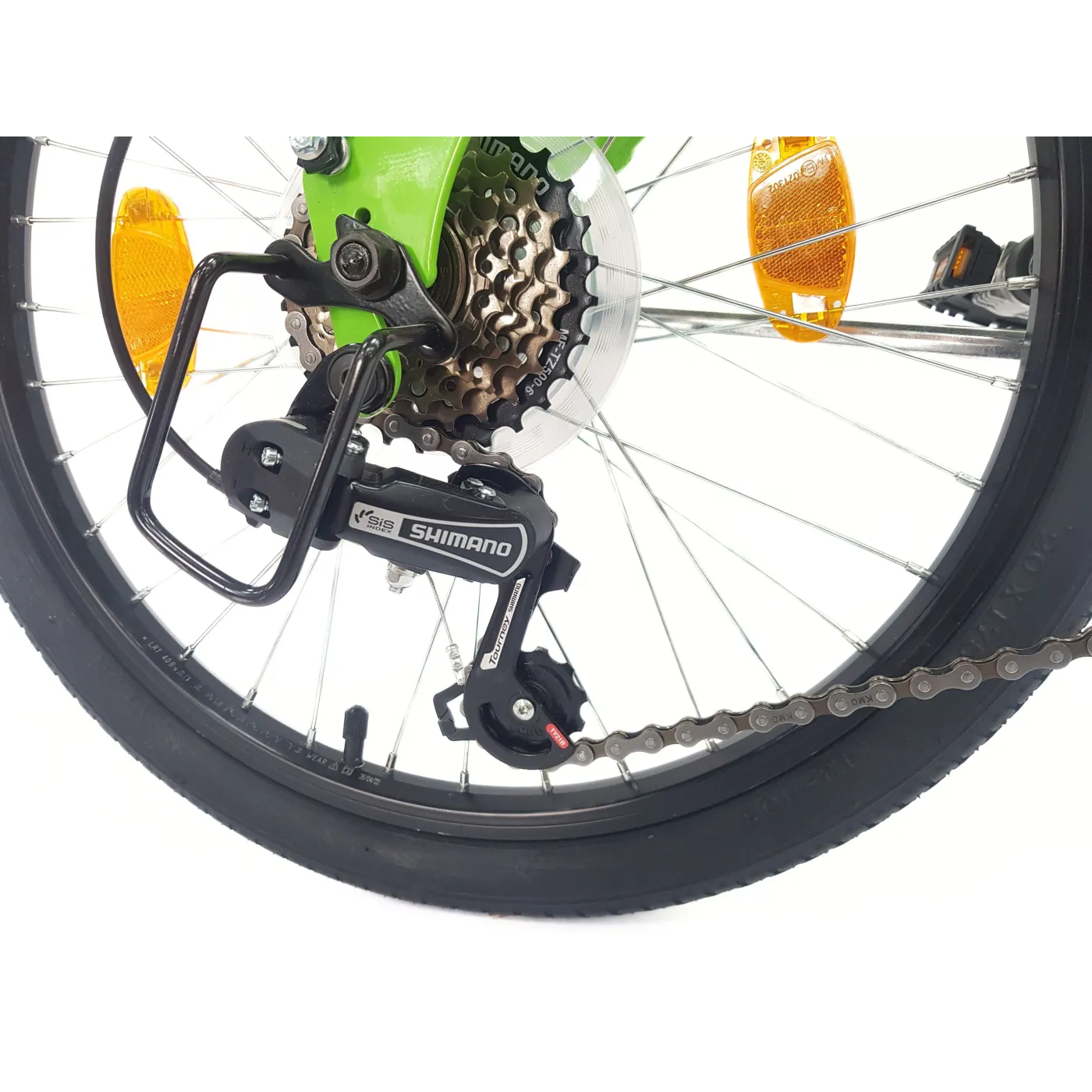👉 ZF20 City Folder jest wyposażony w 6-biegowy napęd łańcuchowy, który zabierze Cię w dowolne miejsce w mieście. Z łatwością wybierasz biegi za pomocą manetki Shimano RevoShift z rękojeścią obrotową. Opony 20" x 1,75" o profilu ulicznym zapewniają dobre właściwości jezdne do użytku miejskiego.