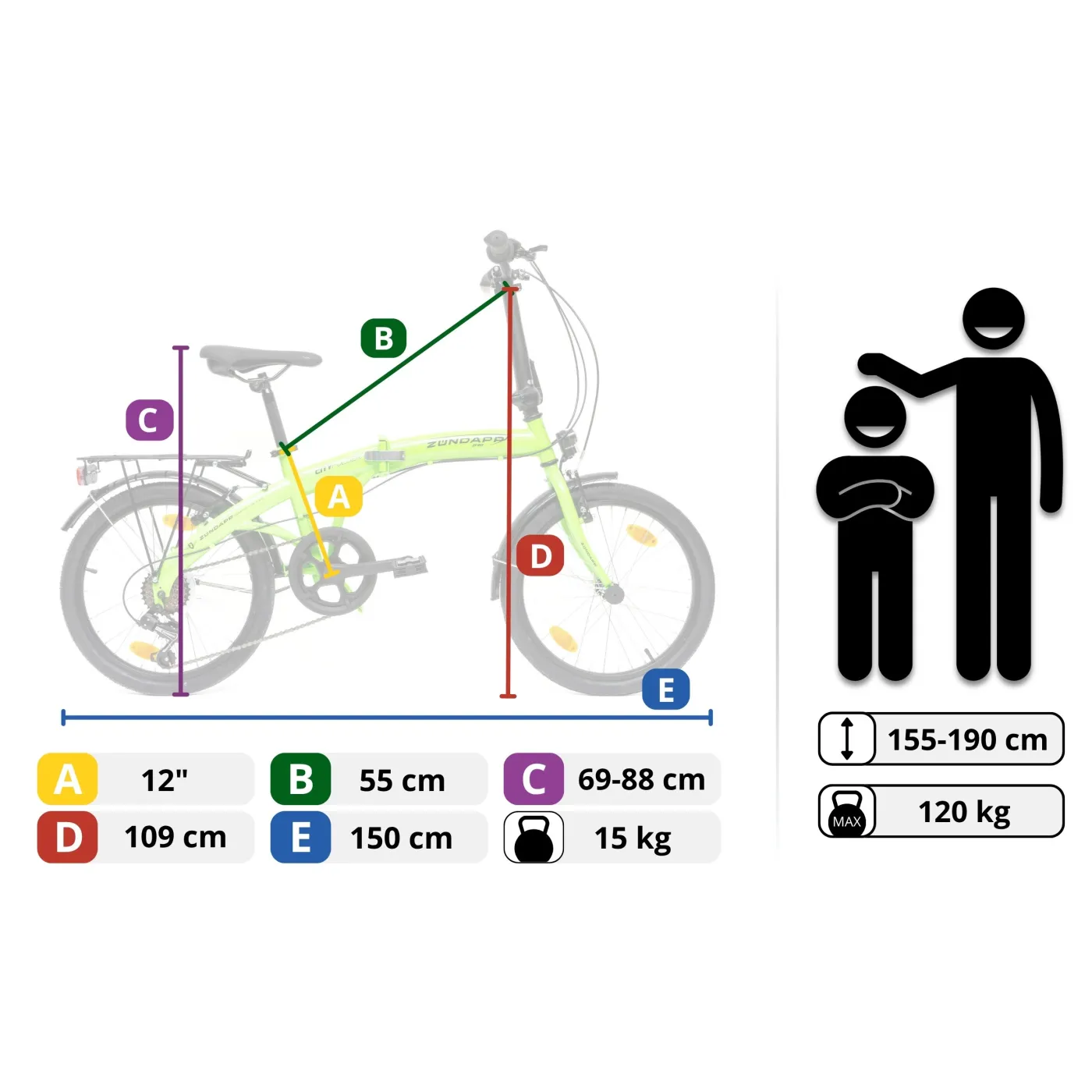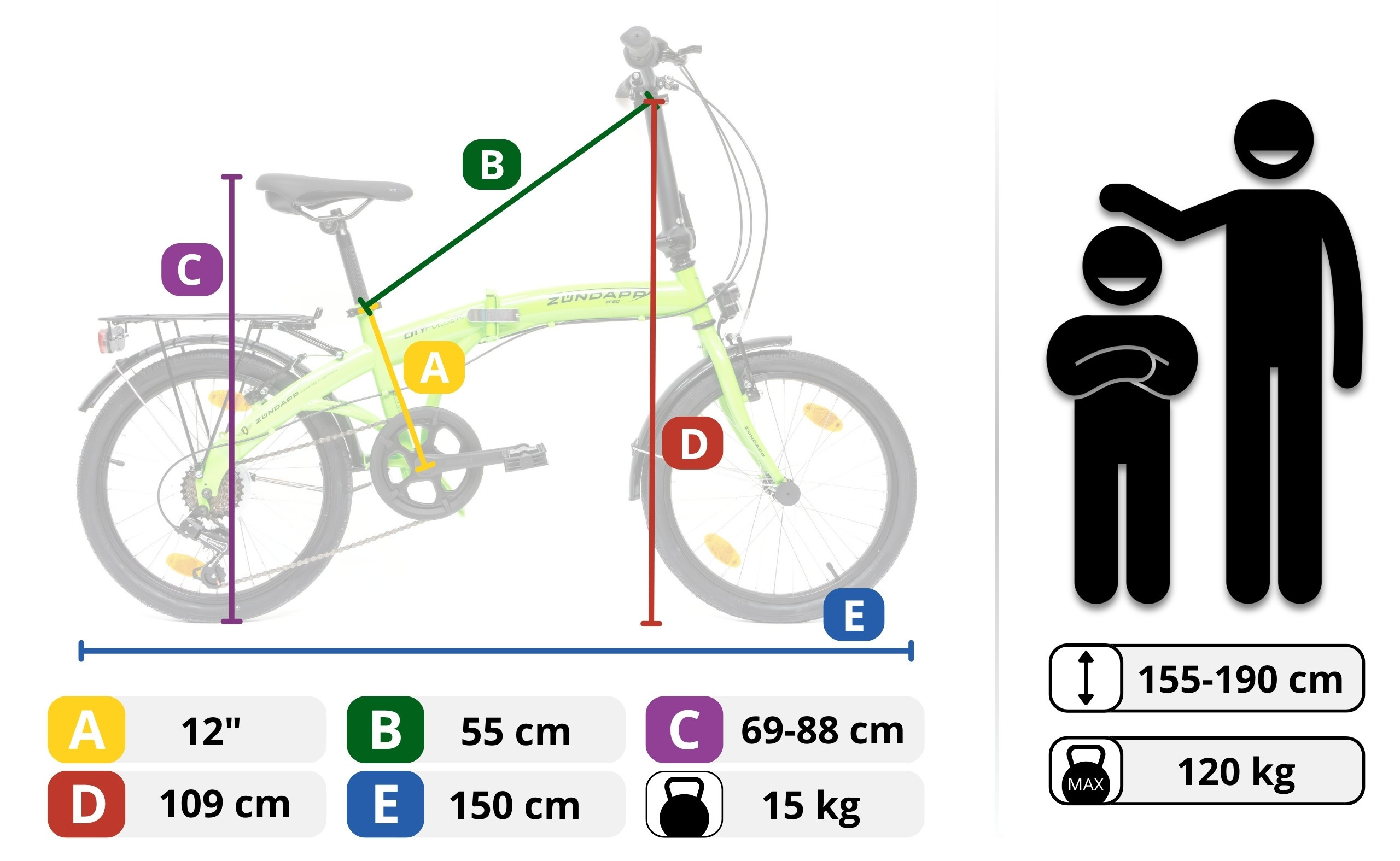Zündapp ZF20 City Folder został wyposażony w stalową ramę składaną 12" (31 cm), która łączy wytrzymałość z funkcjonalnością.