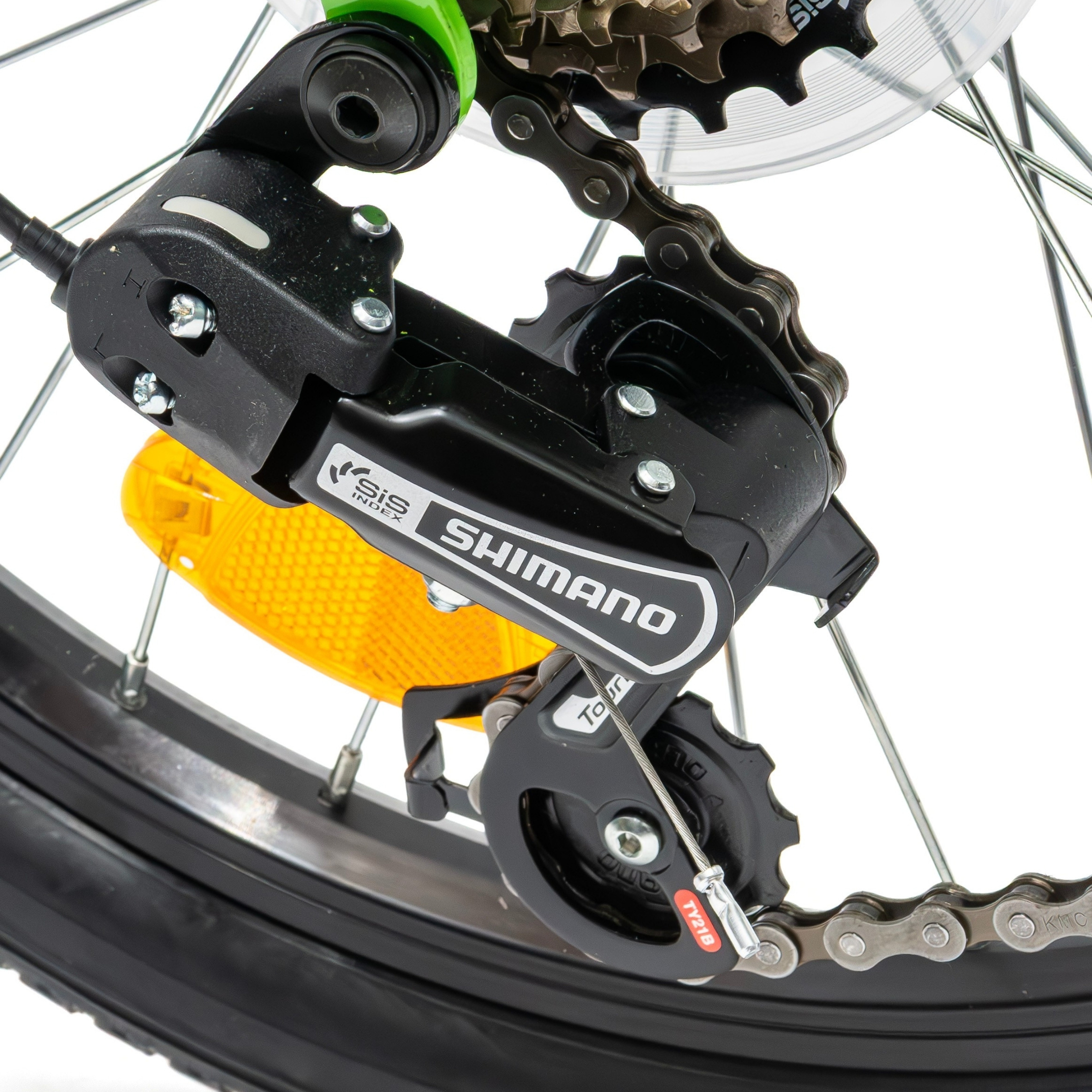 3️⃣ Przerzutka SHIMANO Tourney 6-biegowa – sprawdzony napęd umożliwia płynną zmianę przełożeń i wygodne poruszanie się po mieście.