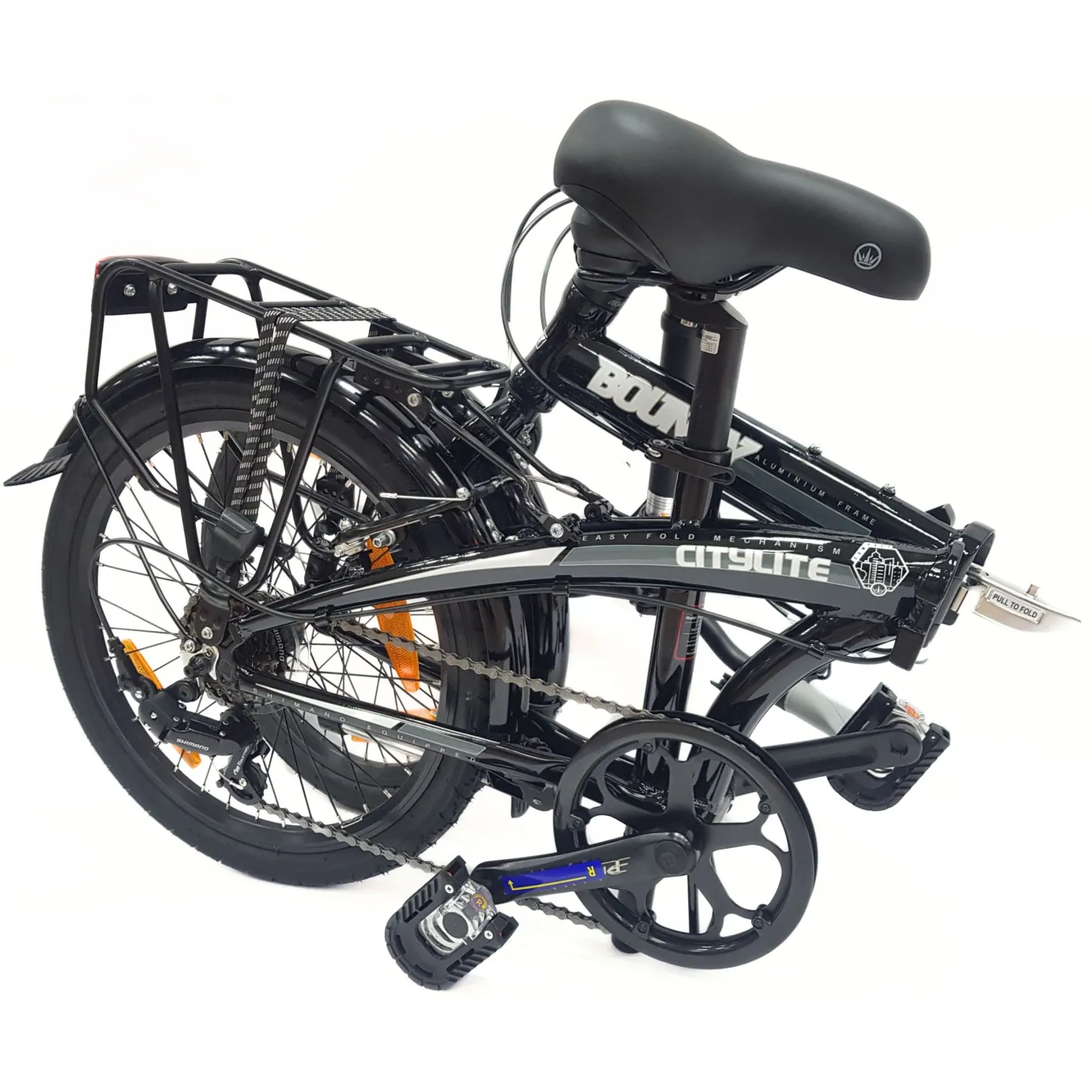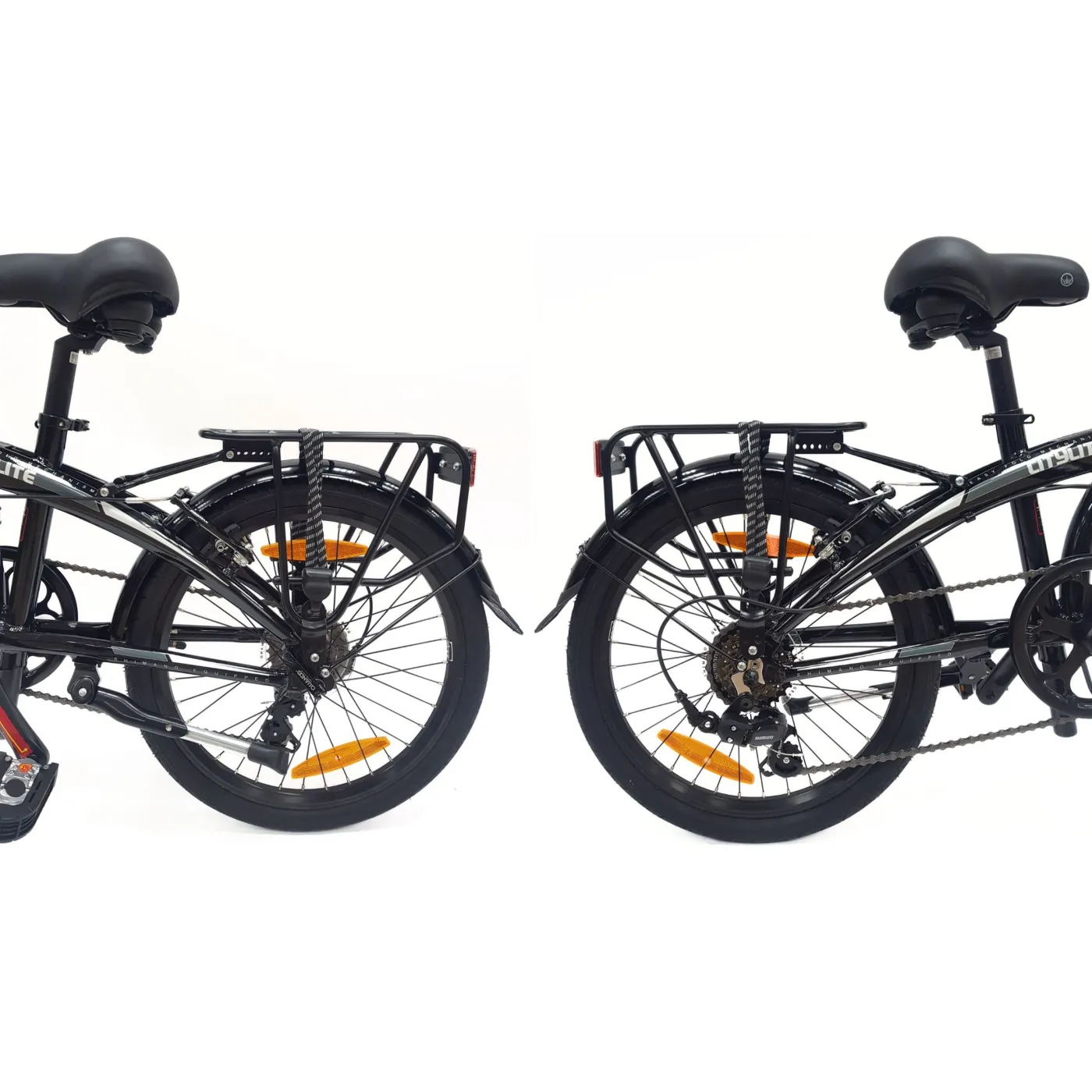 🛠 Lekką aluminiową ramę składaną można szybko i łatwo złożyć dzięki wysokiej jakości przegubowi ramy. 3 proste kroki to ok. 20 sekund – tak złożysz rower i z łatwością przeniesiesz go w dowolne miejsce i zabierzesz ze sobą.