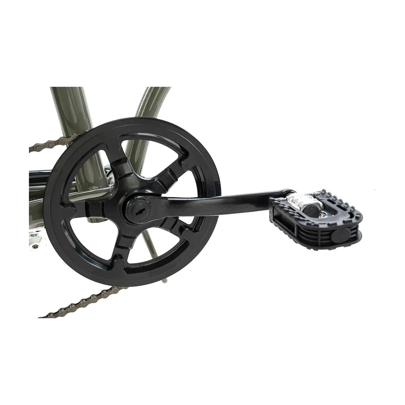 Można bardzo szybko go złożyć, a tym samym zmniejszyć do bardzo kompaktowych wymiarów. Idealny również do przechowywania w bagażniku! Posiada 6-biegową zmianę biegów SHIMANO, która pozwoli na przyjemniejsze pokonywanie wzniesień. Swoje zakupy lub torbę możesz bezpiecznie przechowywać na tylnym bagażniku, natomiast o bezpieczny powrót do domu po zmroku zadba w system oświetlenia.