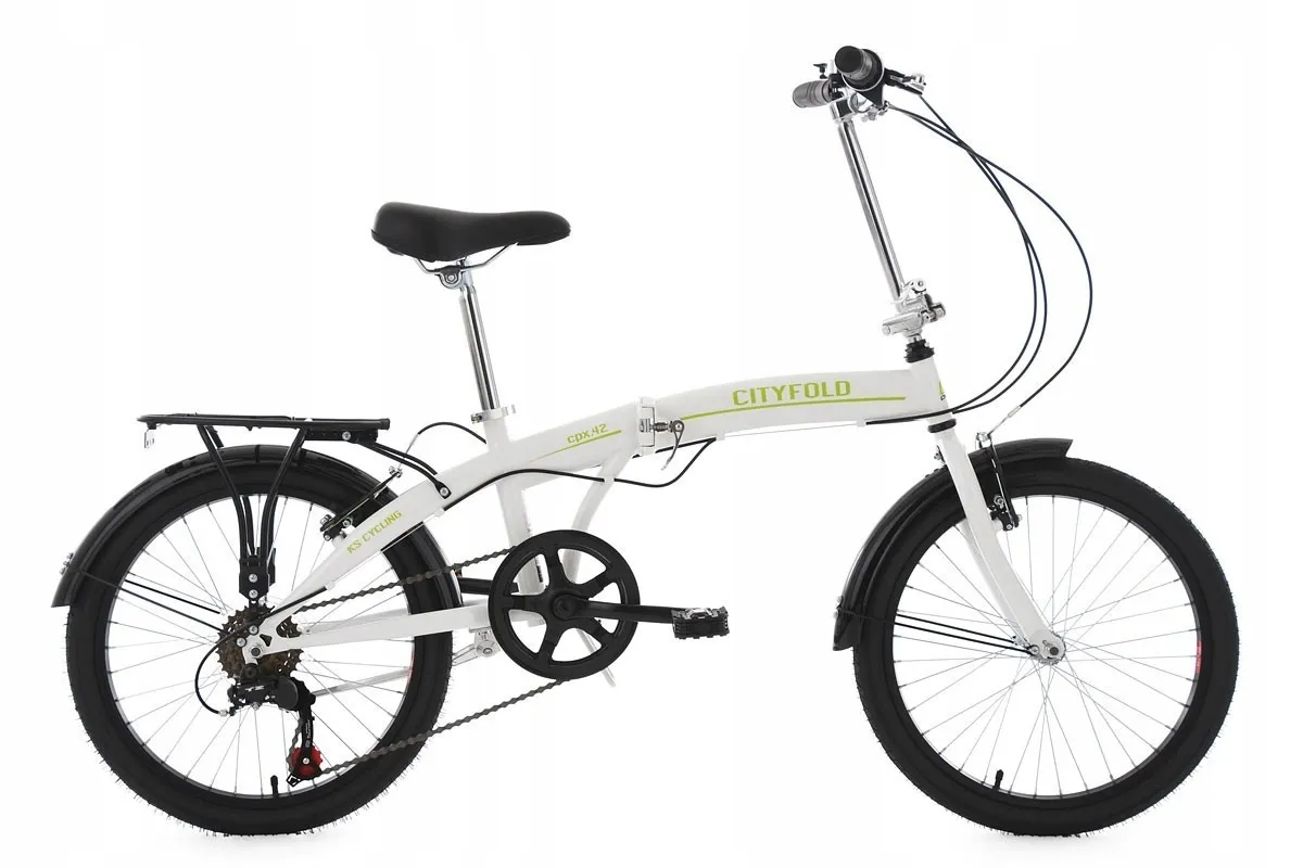 Rower składany Cityfold świetnie sprawdzi się zarówno dla pań jak i panów, którzy cenią sobie wygodne przemieszczanie się po mieście. Stalowy bagażnik umożliwia przewożenie toreb lub zakupów. Wyposażony jest również w światła odblaskowe, przerzutkę oraz solidne hamulce V-brake.