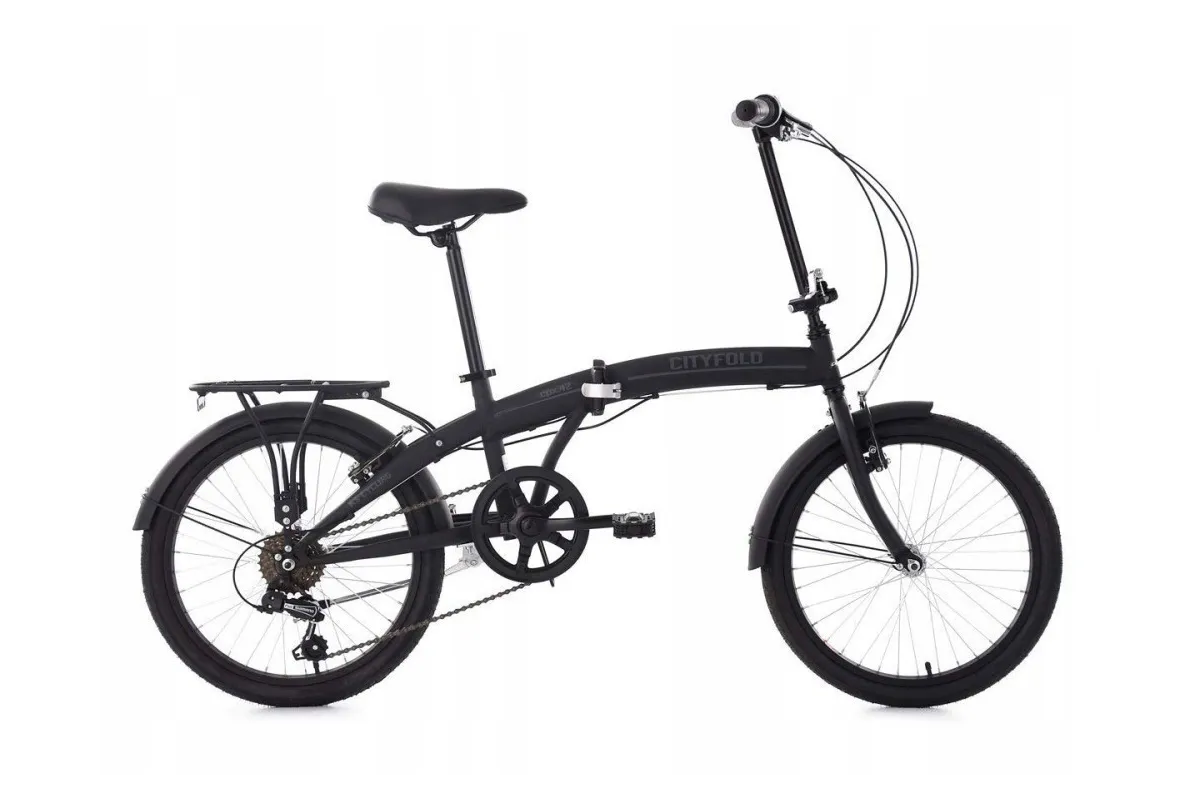Rower składany Cityfold świetnie sprawdzi się zarówno dla pań jak i panów, którzy cenią sobie wygodne przemieszczanie się po mieście. Stalowy bagażnik umożliwia przewożenie toreb lub zakupów. Wyposażony jest również w światła odblaskowe, przerzutkę oraz solidne hamulce V-brake.