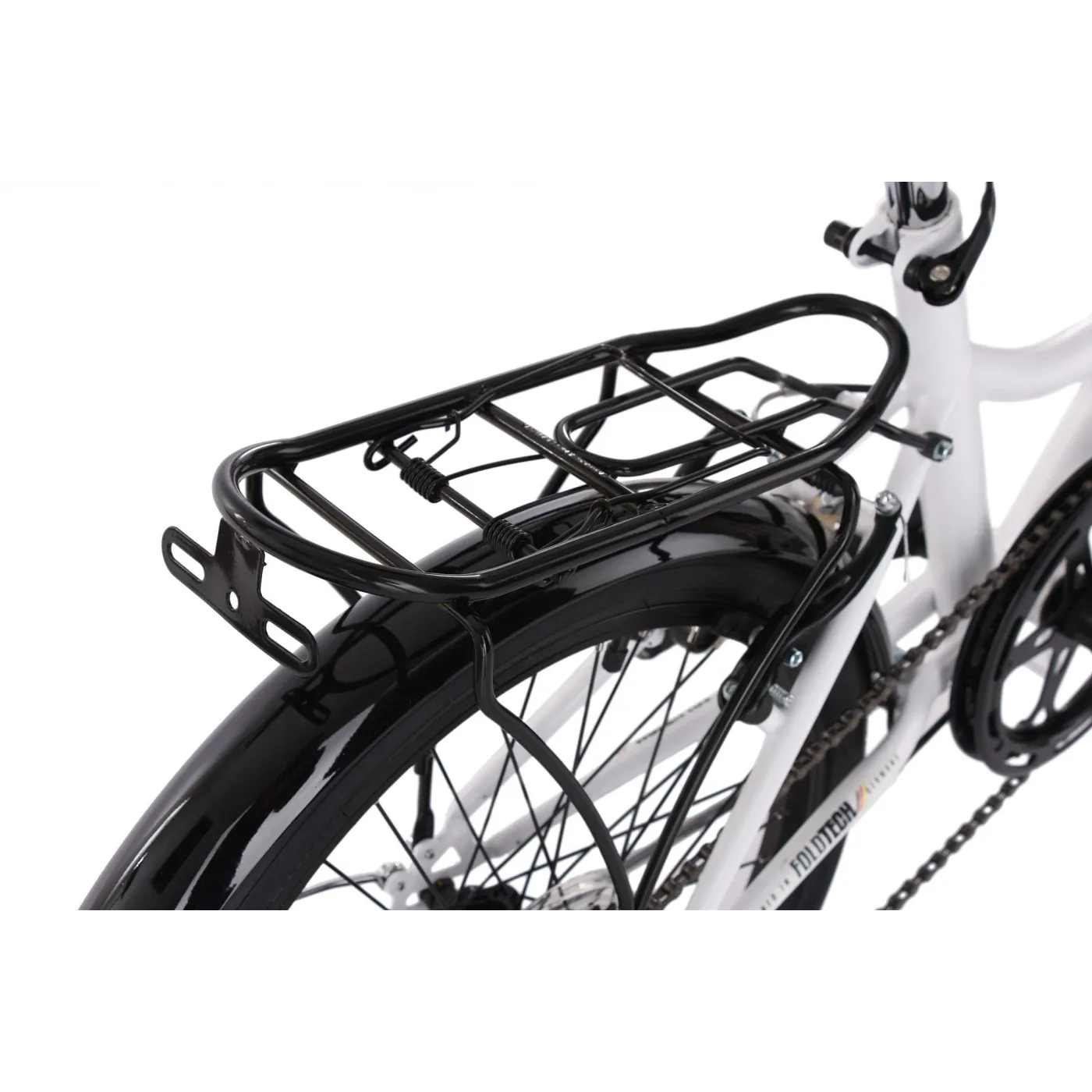 Łatwy w transporcie, gdyż po złożeniu przyjmuje niewielkie rozmiary. Uniwersalny design i kolor sprawia, że właścicielem roweru może być zarówno kobieta jak i mężczyzna. Foldtech posiada 6 biegów i hamulce V-brake, dzięki czemu dostosujesz tryb jazdy do własnych potrzeb i w każdej chwili bezpiecznie się zatrzymasz.
