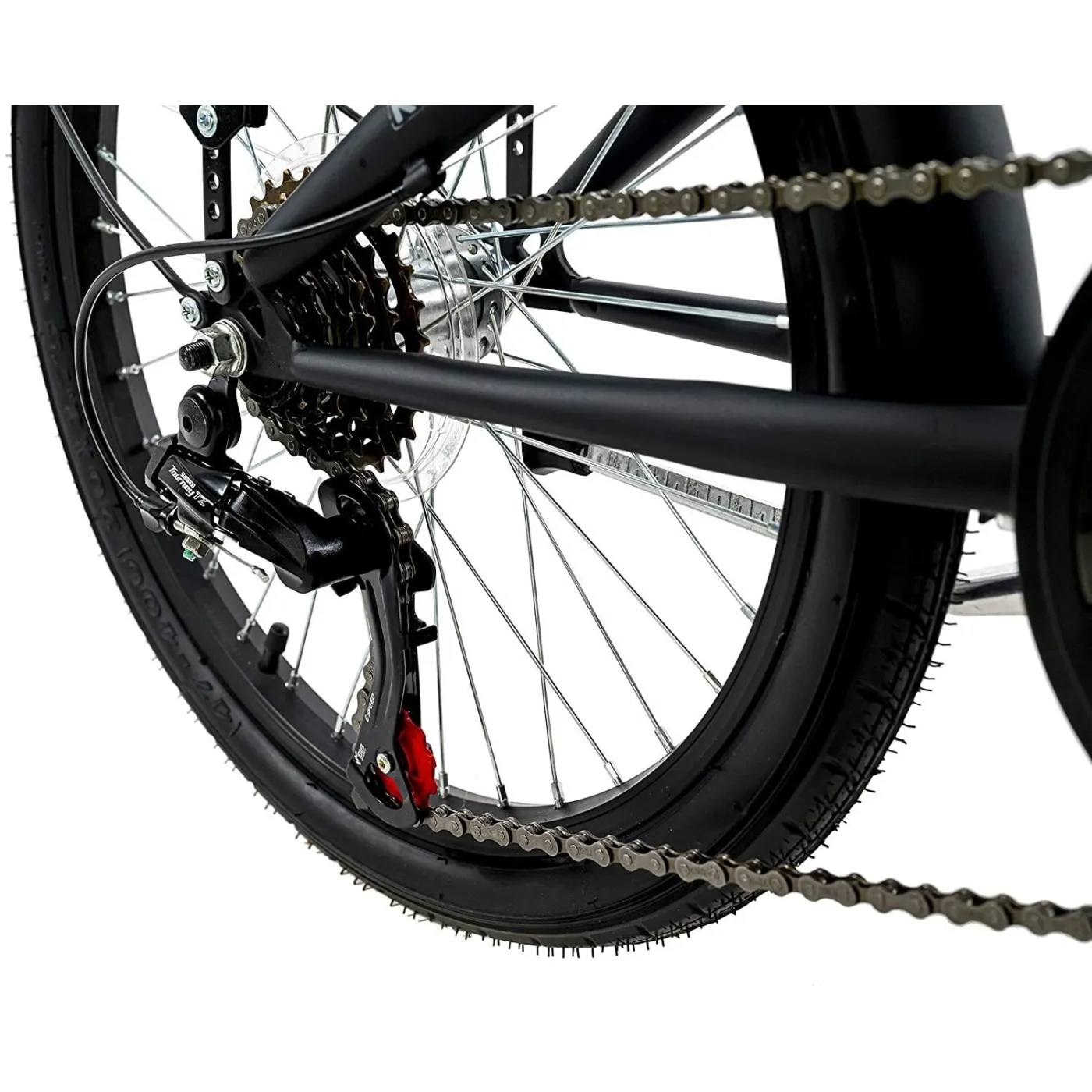 Można bardzo szybko go złożyć, a tym samym zmniejszyć do bardzo kompaktowych wymiarów. Idealny również do przechowywania w bagażniku! Posiada 6-biegową zmianę biegów SHIMANO, która pozwoli na przyjemniejsze pokonywanie wzniesień. Swoje zakupy lub torbę możesz bezpiecznie przechowywać na tylnym bagażniku, natomiast o bezpieczny powrót do domu po zmroku zadba w system oświetlenia.