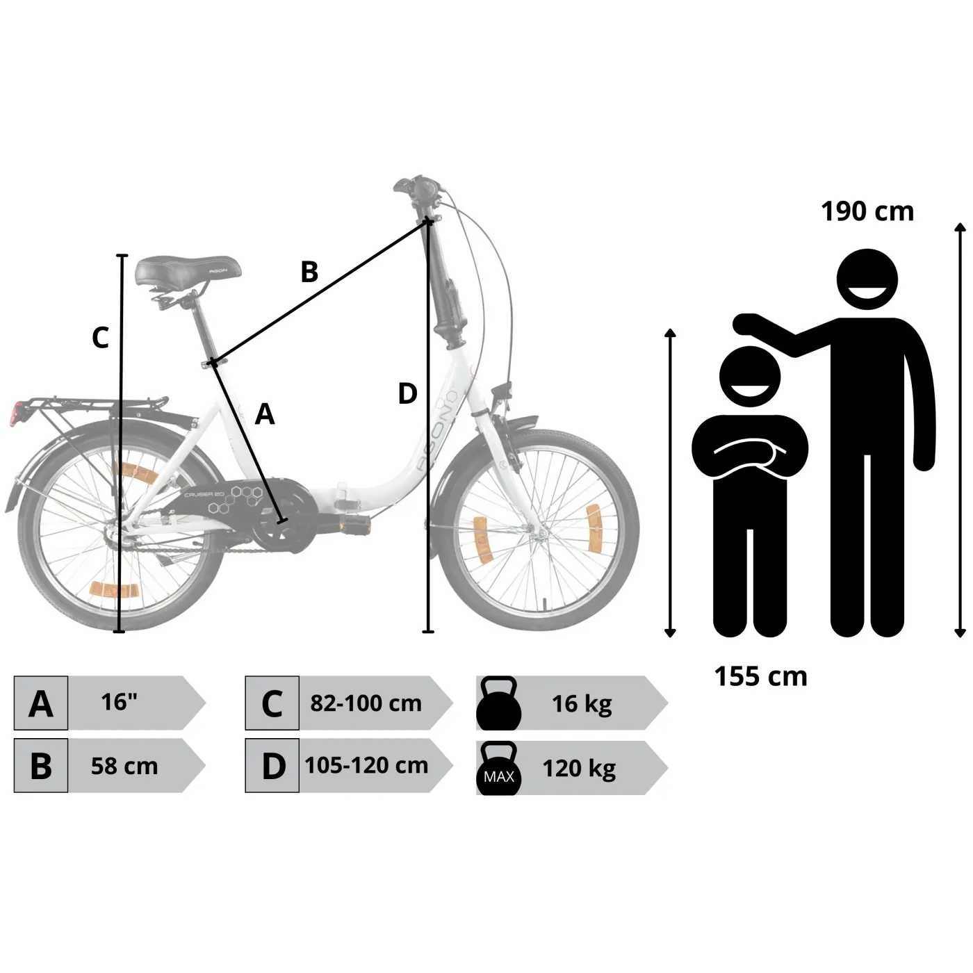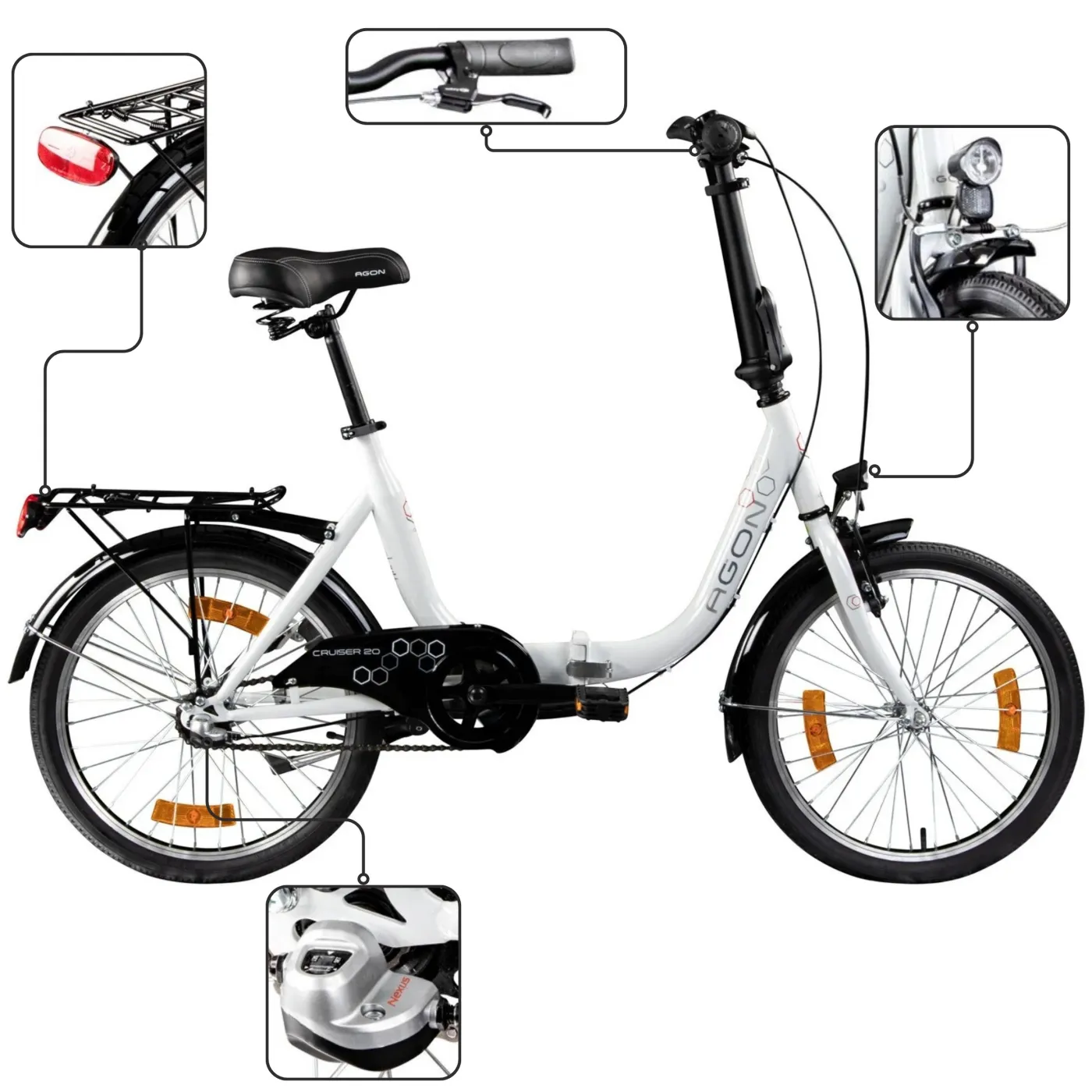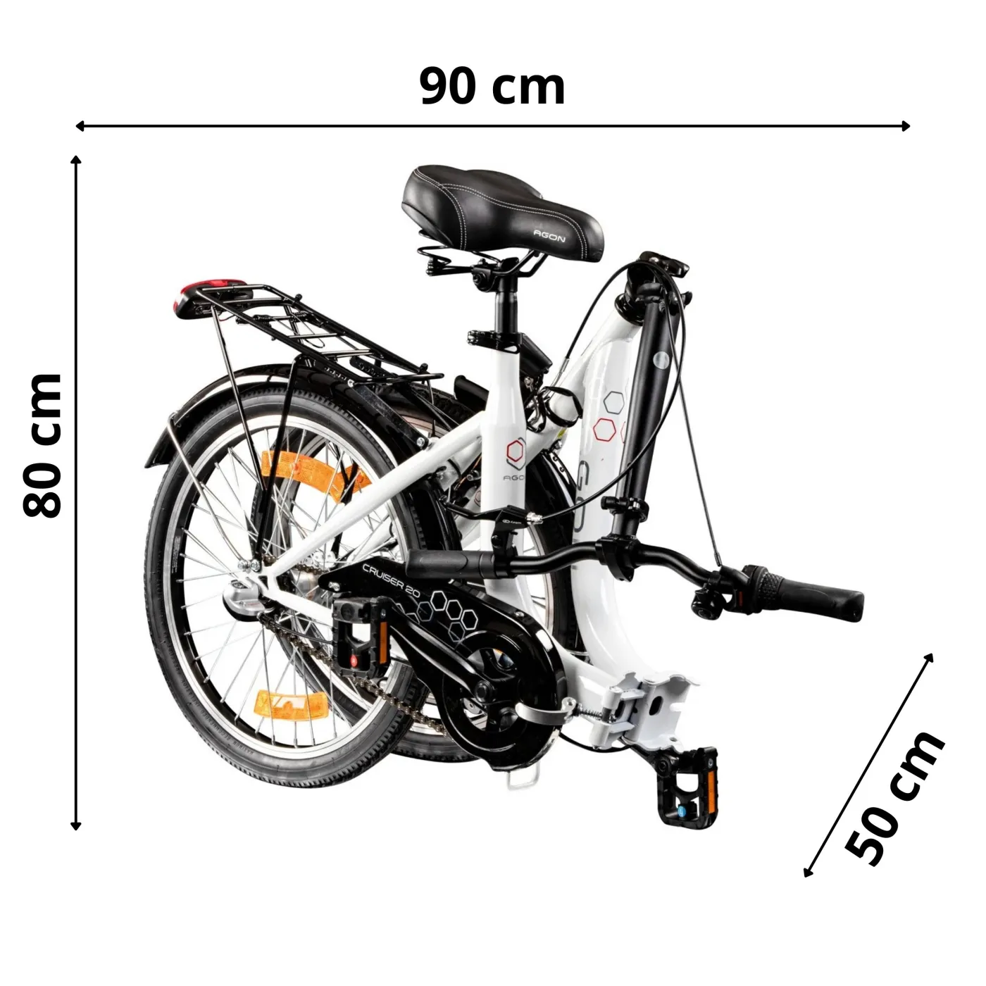 Szukasz praktycznego roweru, który łatwo przechowasz, przewieziesz i dopasujesz do swoich potrzeb? Agon Cruiser to solidny, składany rower miejski zaprojektowany z myślą o codziennym użytkowaniu. Stalowa konstrukcja, kompaktowe koła 20" oraz kompletne wyposażenie – w tym oświetlenie zasilane dynamem – sprawiają, że rower jest gotowy do jazdy od razu po rozłożeniu.