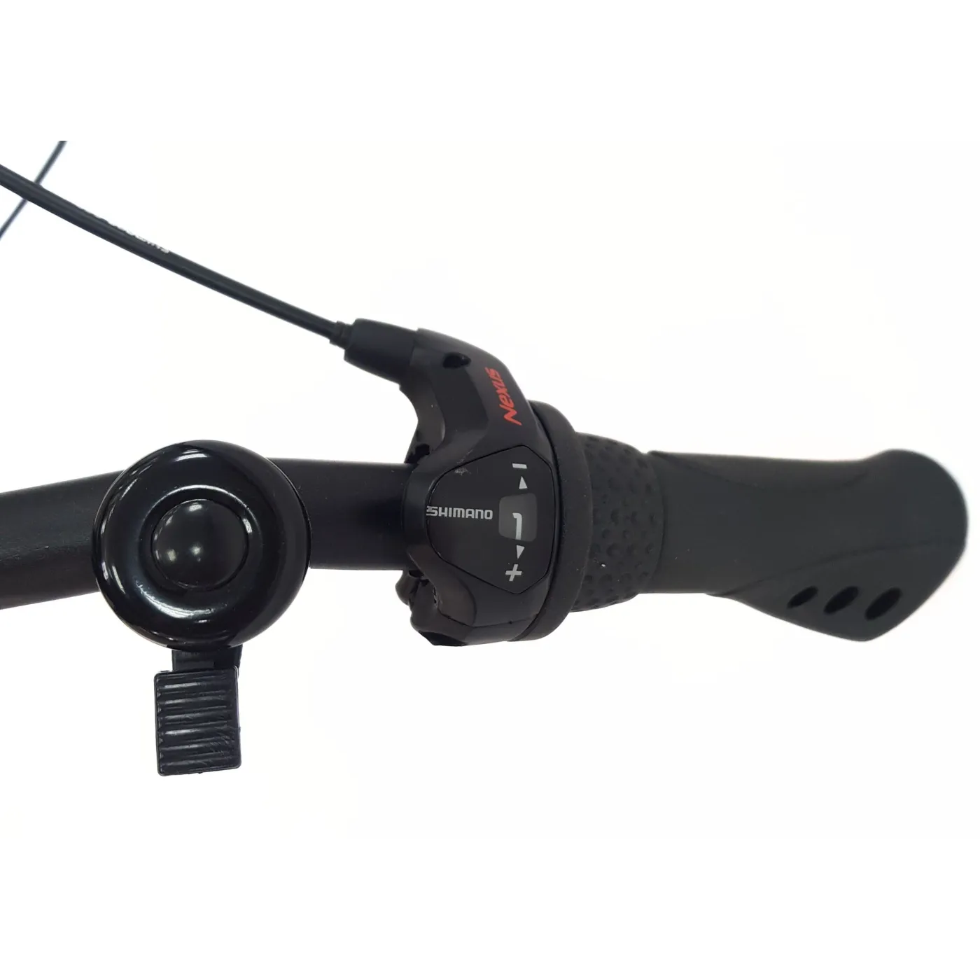 ✨ Rower ma 3-biegową przekładnię w piaście z manetką Shimano Twist Grip z optycznym wskaźnikiem przełożenia. Oprócz hamulca nożnego z tyłu znajduje się również hamulec V na przednim kole, dzięki czemu przez cały czas masz doskonałą kontrolę nad prędkością.