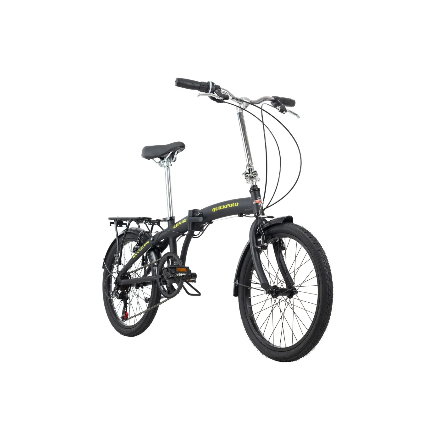 Rower składany Quickfold świetnie sprawdzi się zarówno dla pań jak i panów, którzy cenią sobie wygodne przemieszczanie się po mieście. Tylny bagażnik umożliwia przewożenie toreb lub zakupów. Wyposażony jest w 6-biegową przerzutkę oraz solidne hamulce V-brake.