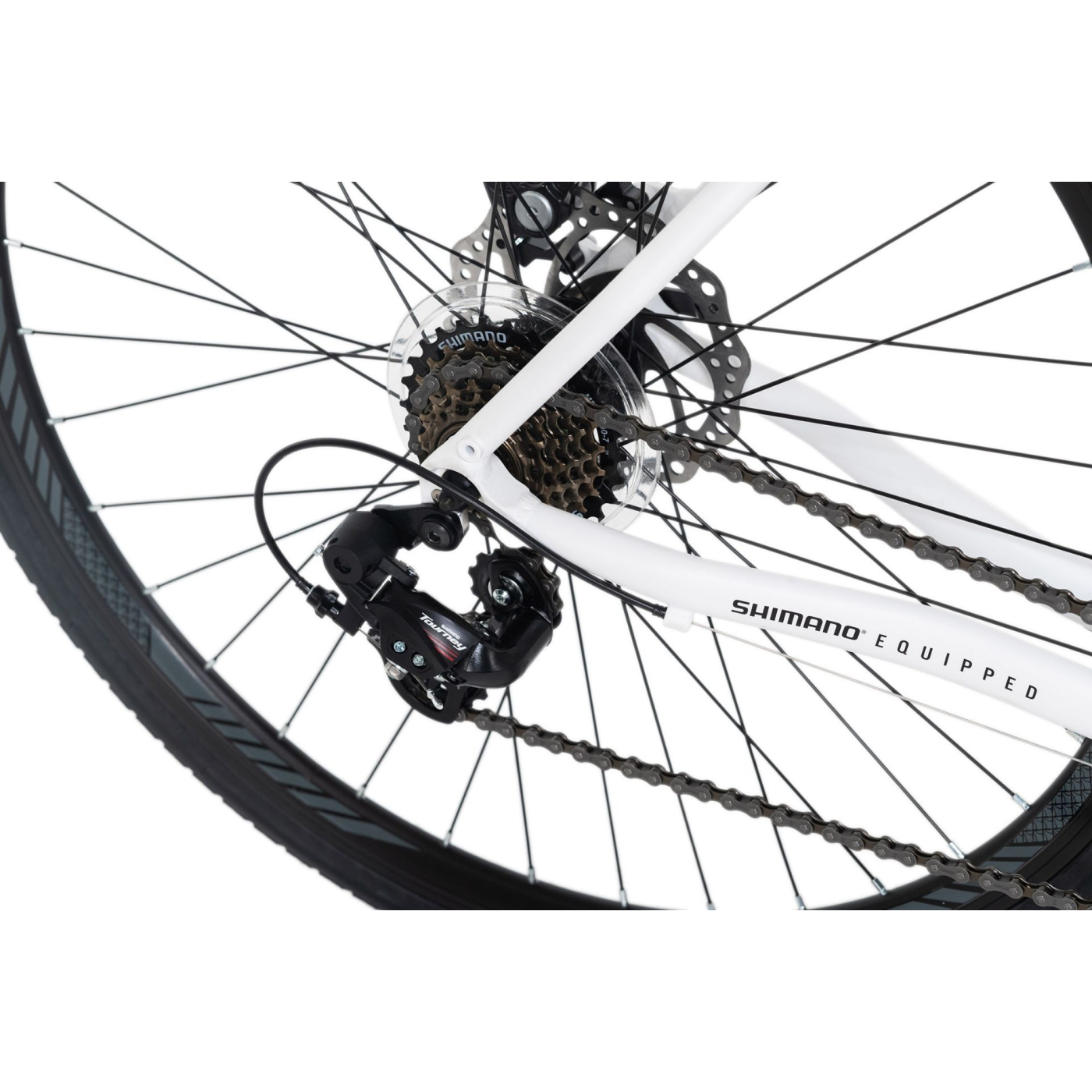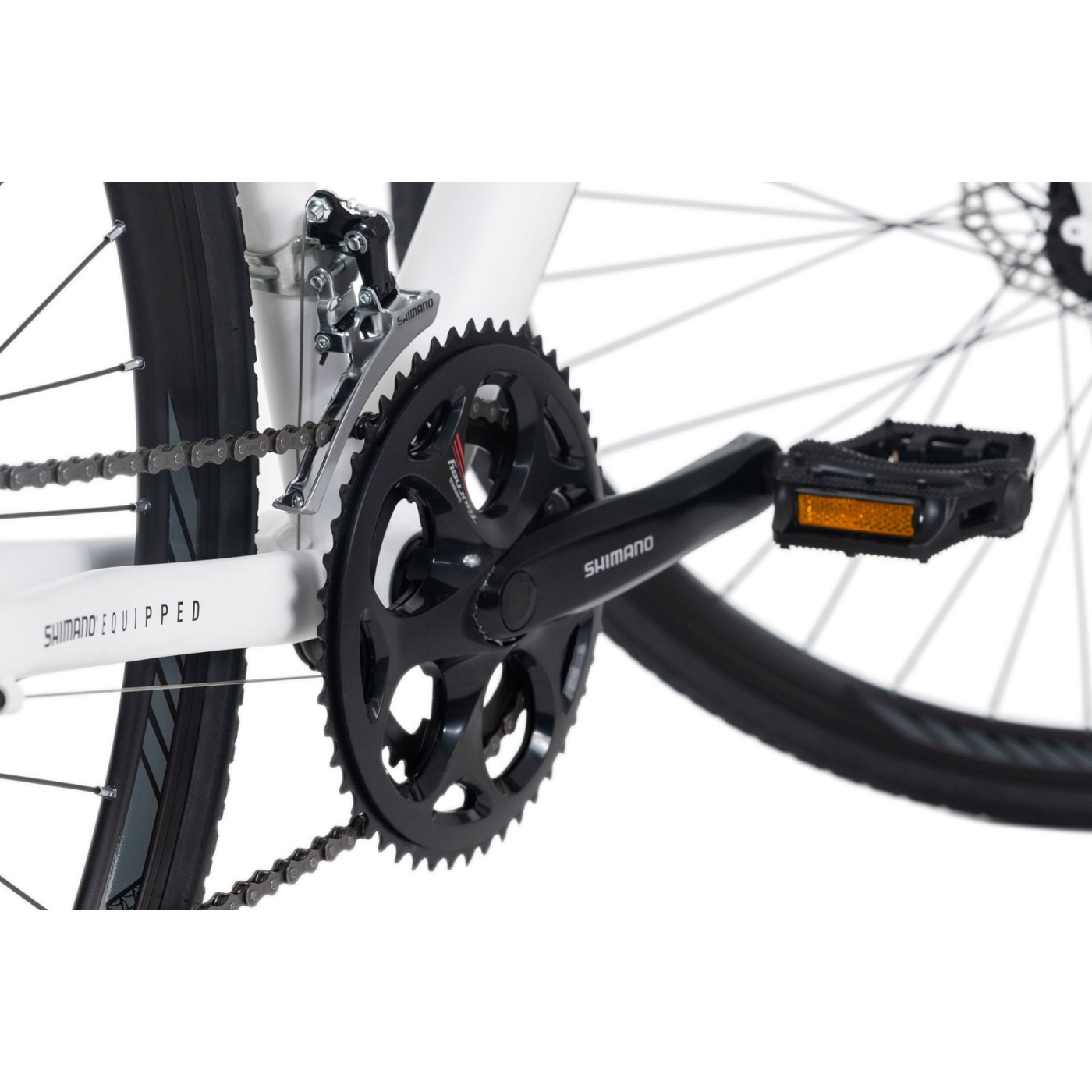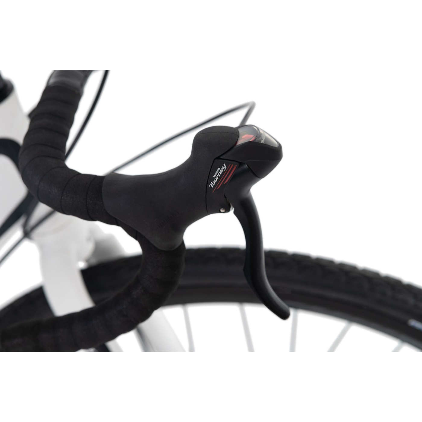 Xceed firmy KS Cycling to model oferujący użytkownikowi prawdziwe wrażenia z jazdy na rowerze wyścigowym, nawet poza utartymi szlakami. Szersze, lekko wyprofilowane opony zapewniają niezbędną przyczepność na luźnych nawierzchniach, pedały platformowe zapewniają niezbędne wsparcie, a mechaniczne hamulce tarczowe zapewniają odpowiednio wyższą siła hamowania w terenie. Xceed ma także 14 biegów, które można łatwo zmieniać za pomocą precyzyjnej i solidnej klamkomanetki od Shimano.