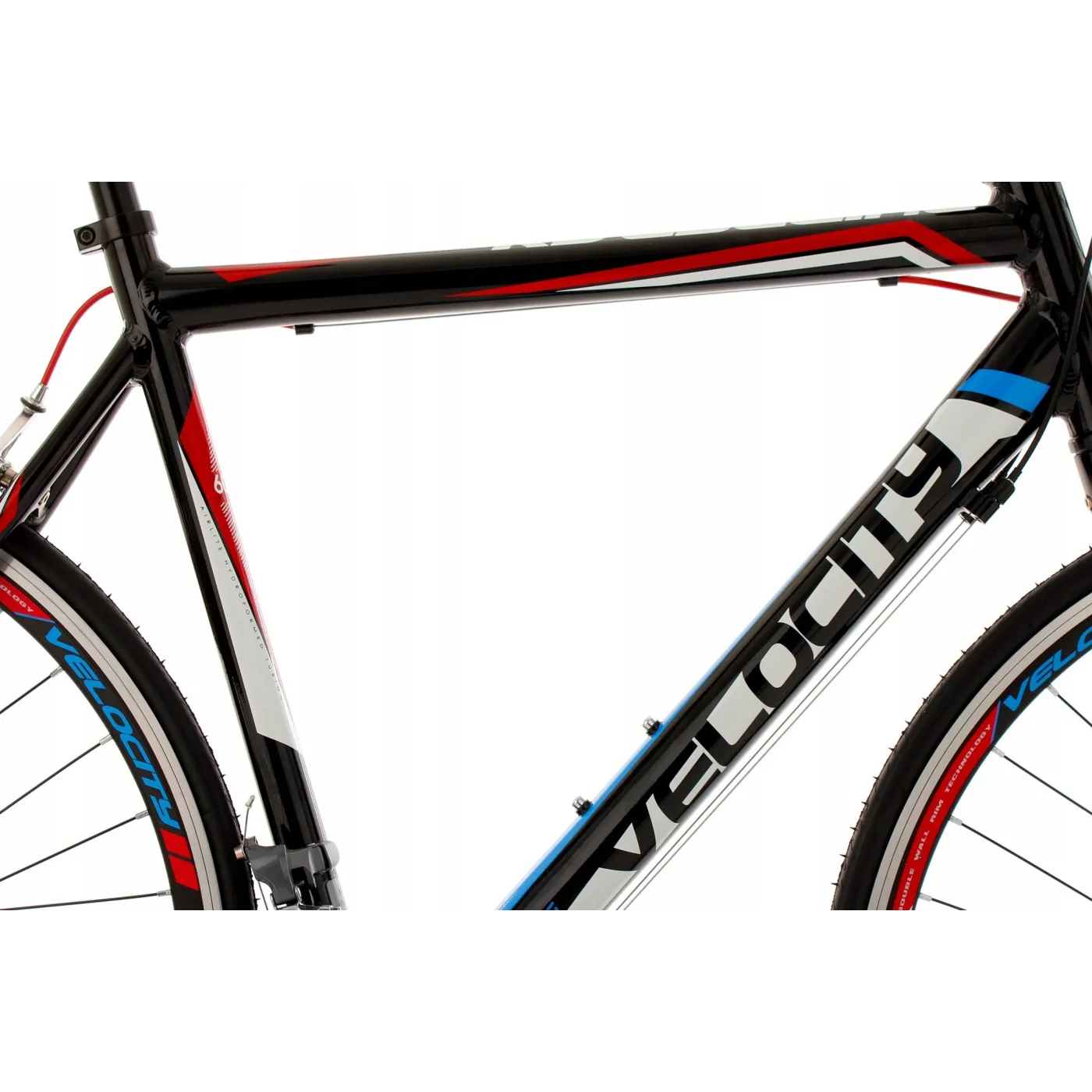 Lekki rower szosowy Velocity, to model inny niż wszystkie. Wyposażenie w 24 biegi Shimano i 28-calowe koła, skutkuje wysokim komfortem jazdy. Zachwycić może też jego design i kolorystyka: czerwono-niebieskie wstawki, które dodają mu sportowego charakteru.