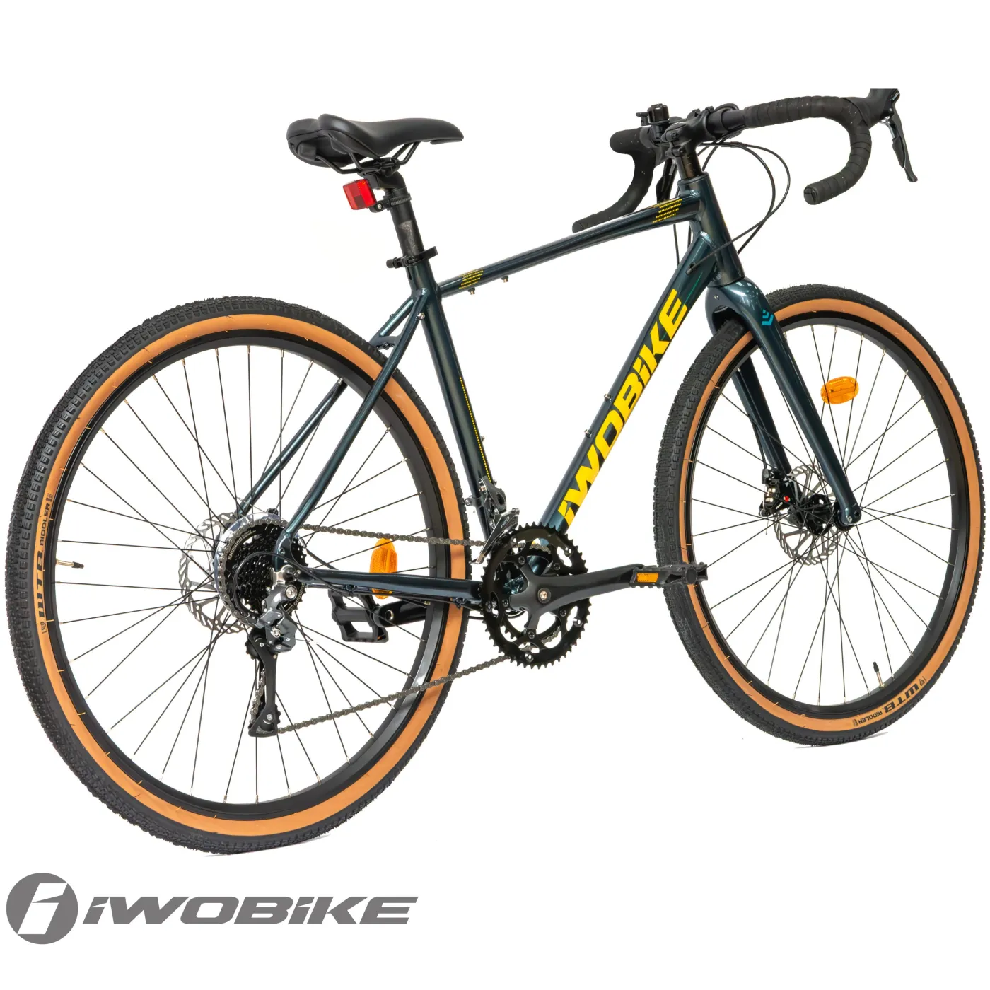 Szerokie gravelowe opony gwarantują przyczepność, komfort i niskie opory toczenia – świetne na asfalt, szuter i leśne dukty. 🌿🐾