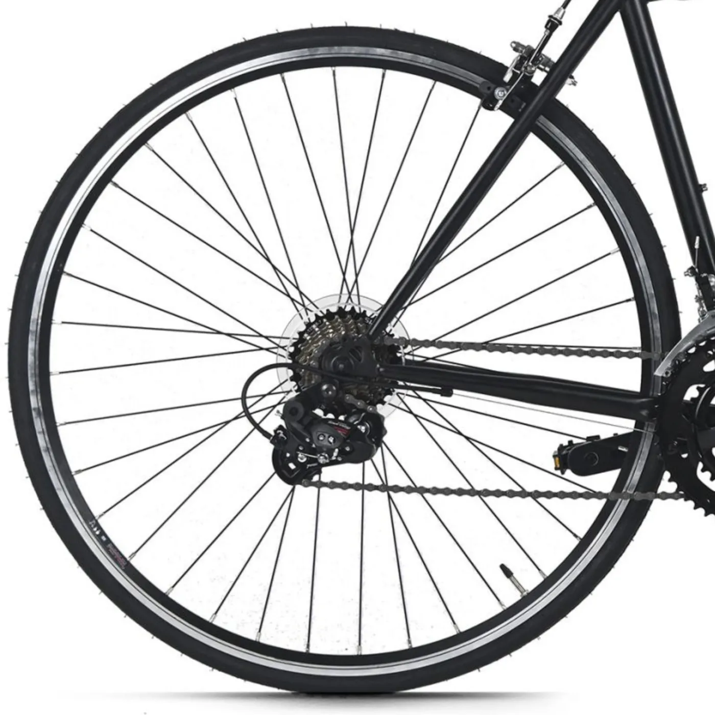 Rower szosowy KS Cycling ADORE RACER został wyposażony w koła 28" z oponami 1,5/8", które zapewniają płynną i dynamiczną jazdę po utwardzonych nawierzchniach.
