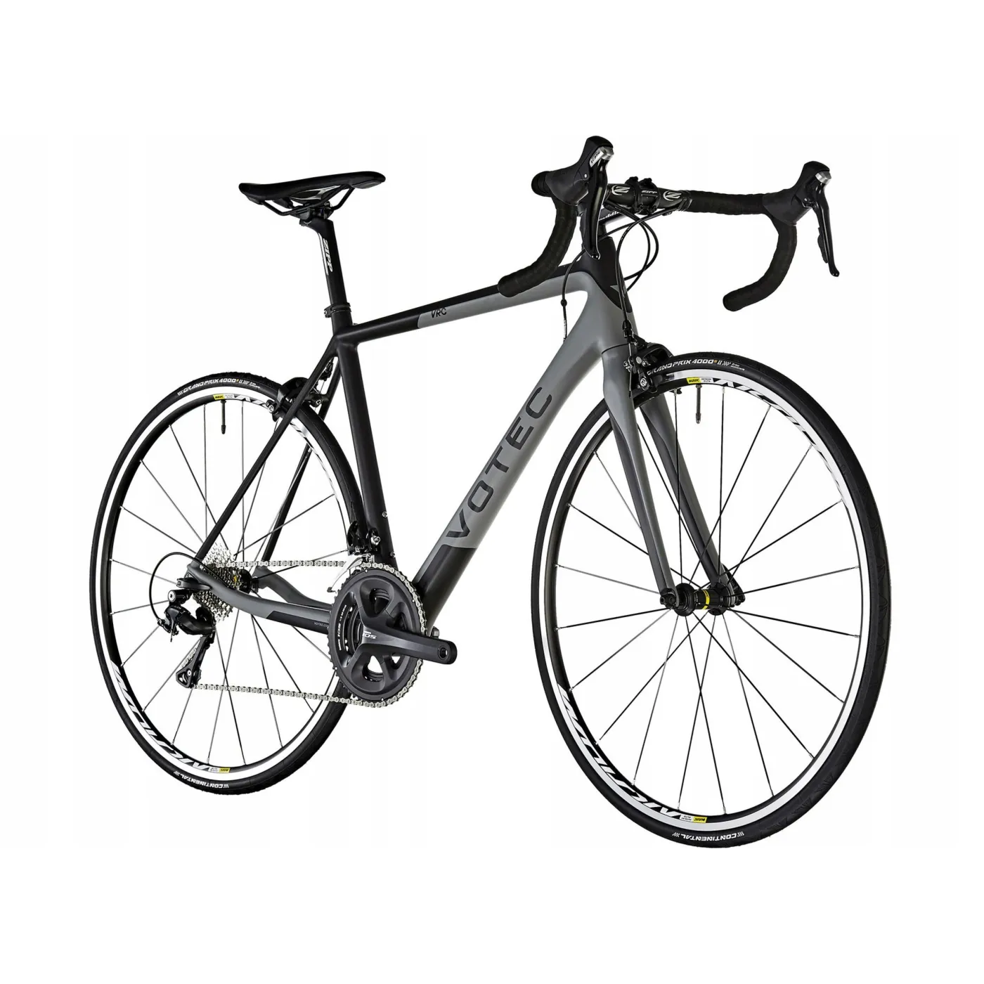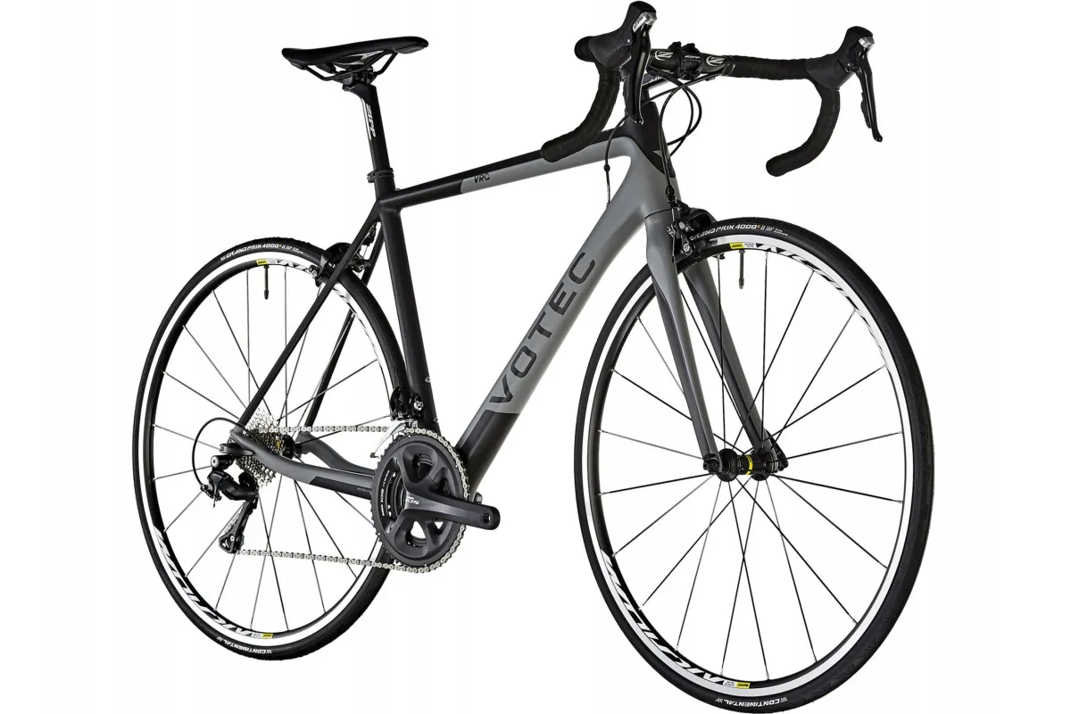 VOTEC VRC jest stworzony do sportowego stylu jazdy. Lekko, szybko i dynamicznie- nawet pod górę! Podstawą VRC jest karbonowa rama i widelec- opracowane i przetestowane w Niemczech tak aby jak najlepiej spełniać swoją rolę na trasie. Ten imponujący zestaw zapewnia wyjątkową lekkość i trwałość- doceni to zarówno weekendowy jak i doświadczony rowerzysta. Precyzyjną i szybką zmianę biegów gwarantuje system Shimano Sram RED eTAP o szerokim zakresie zmiany biegów dzięki kasecie z zębatkami 11-28 i korbą 52/36. Wyposażony w opony wyścigowe Mavic o wysokiej wydajności, które dają najlepsza równowagę, kontrolę i komfort. Całość dopełnia imponujący osprzęt- to połączenie sprawdzonych części od firmy ZIPP, w tym aluminiowa kierownica, wspornik oraz sztyca siodełka. Zachwyci fanów prawdziwych tras długodystansowych. Aby dodatkowo zwiększyć estetykę roweru, wszystkie kable i przewody poprowadzono wewnątrz ramy- dzięki temu konserwacja roweru będzie dużo łatwiejsza.