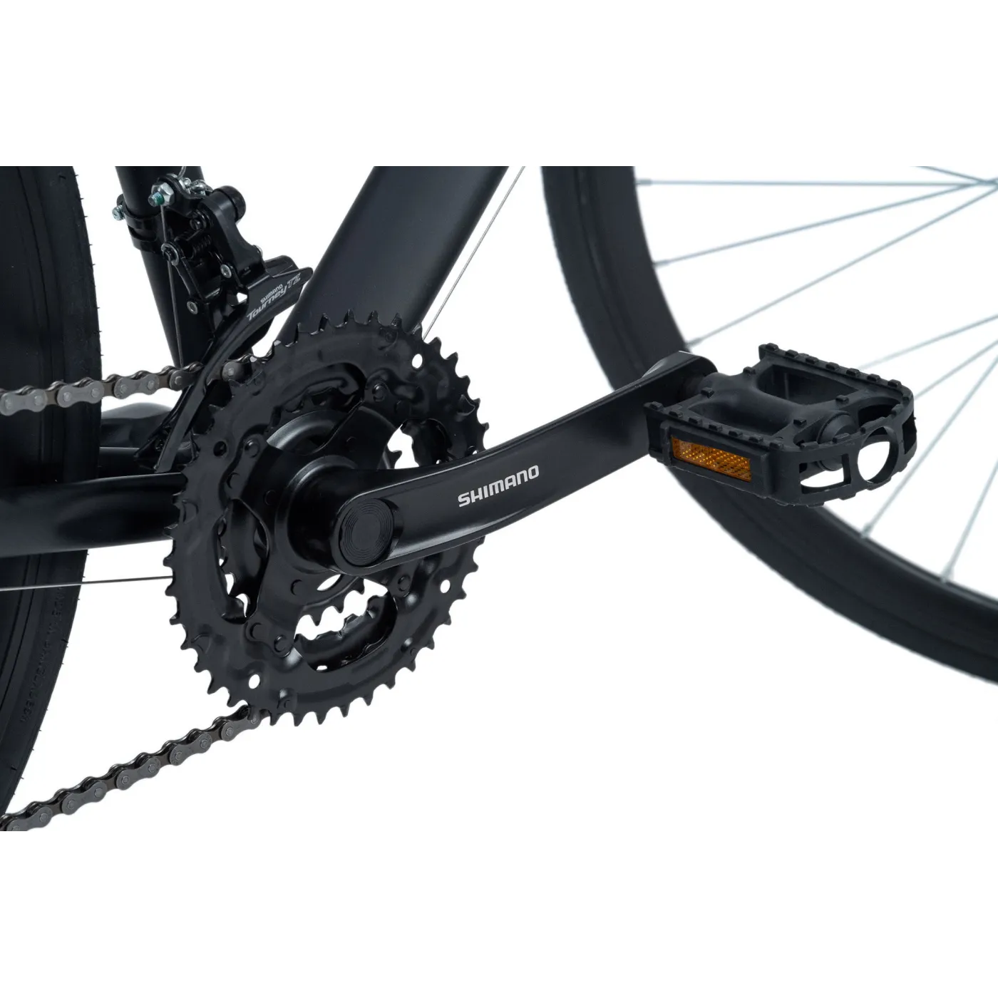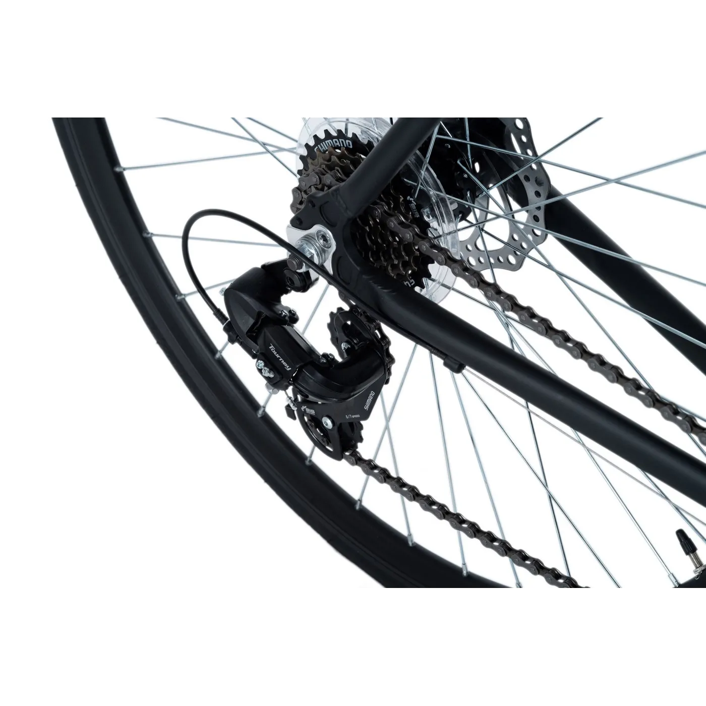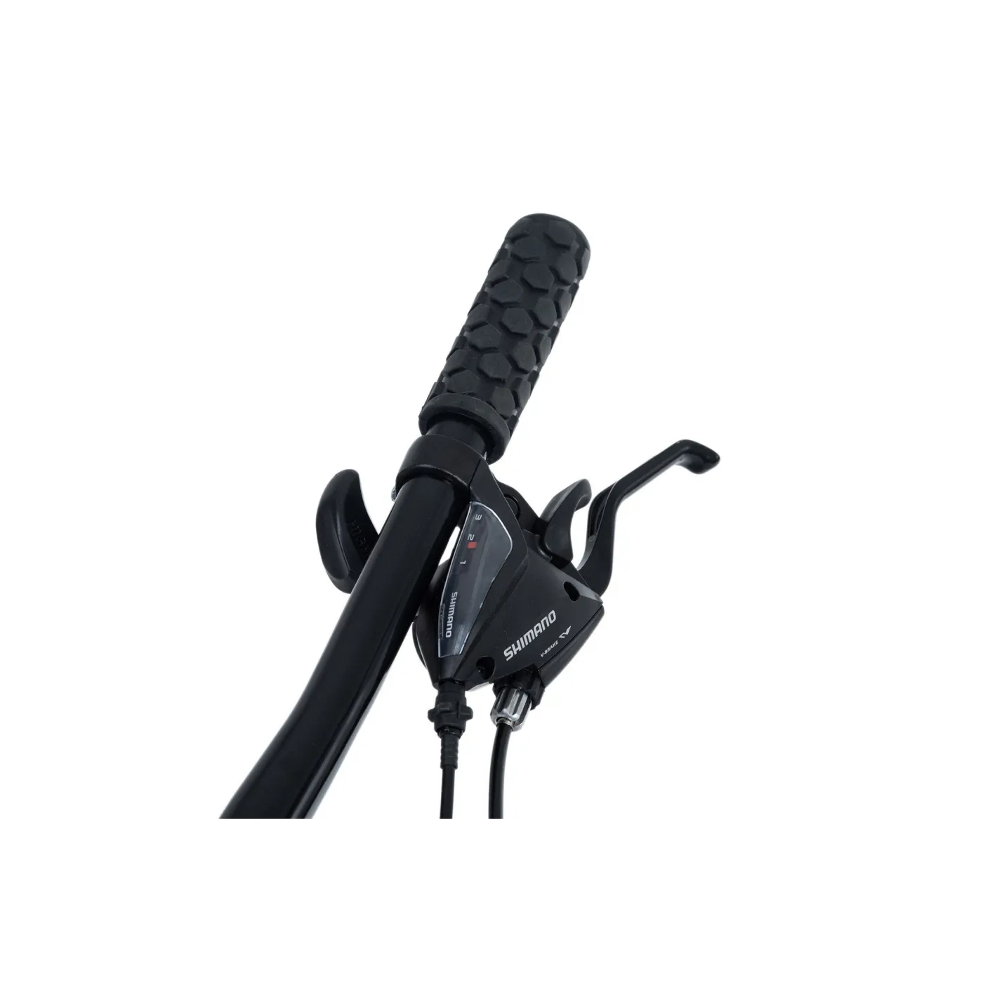 Lekka aluminiowa konstrukcja jest wyposażona w 21-biegową przerzutkę. Szersze, lekko profilowane opony zapewniają niezbędną przyczepność, a mechaniczne hamulce tarczowe gwarantują bezpieczne hamowanie. Biegi można wygodnie zmieniać za pomocą precyzyjnej i solidnej manetki grupy SHIMANO.