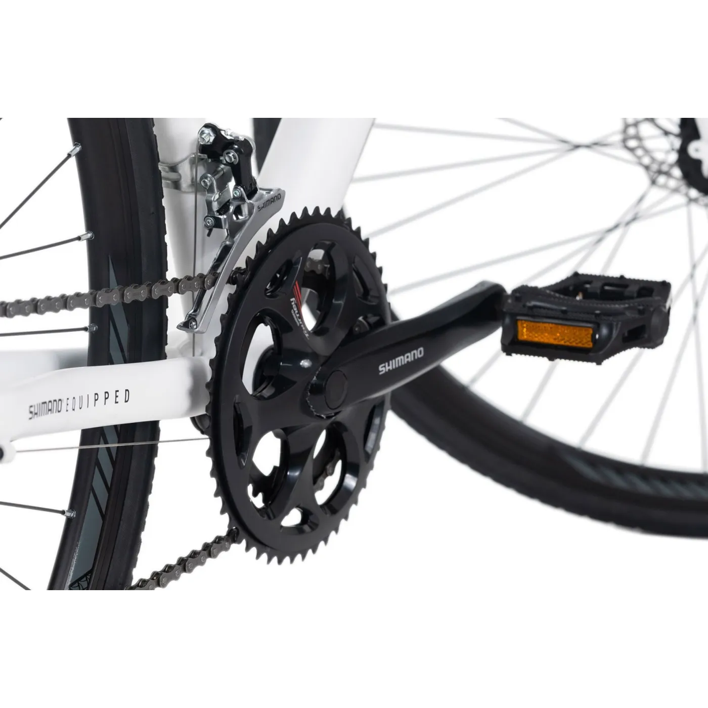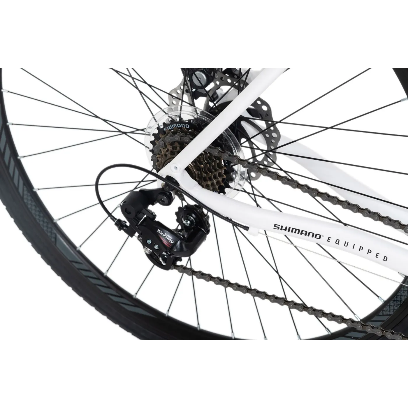 XCEED ma 14 biegów, które można łatwo zmieniać za pomocą precyzyjnej i wytrzymałej grupy SHIMANO Tourney. Stabilna aluminiowa rama i wiele innych aluminiowych części zmniejsza wagę do zaledwie około 13 kg.