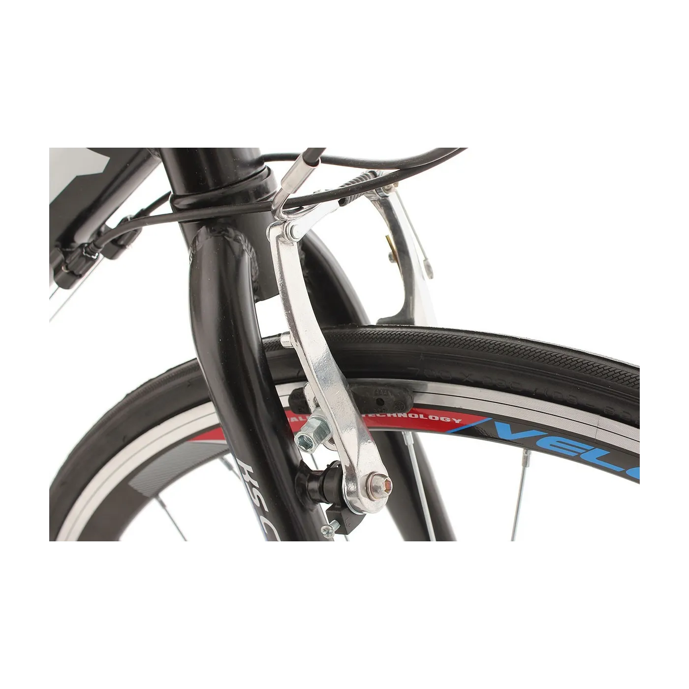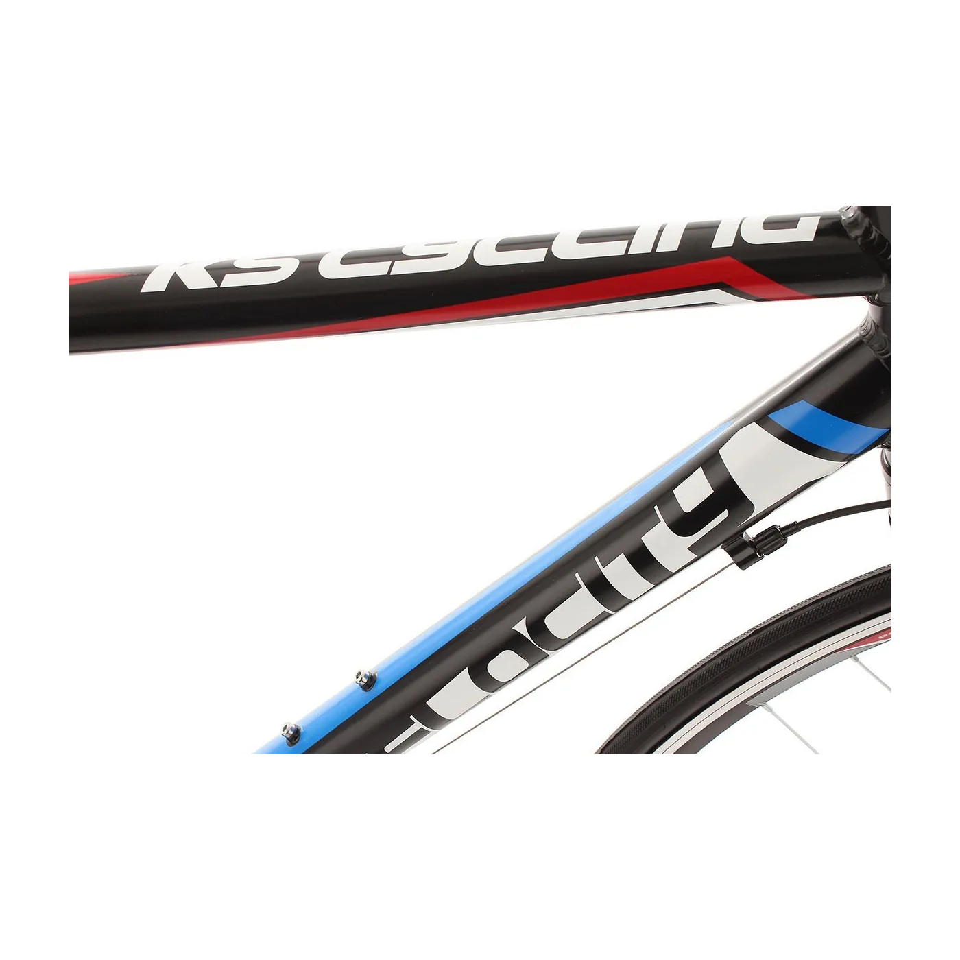 Aluminiowa rama w kolorze czarnego matu z detalami w kolorze czarnym, czerwonym i niebieskim zachwyca wyjątkowym sportowym wyglądem i z pewnością przyciągnie wzrok każdego. Do całości pasuje wygodne siodełko o ergonomicznym kształcie.