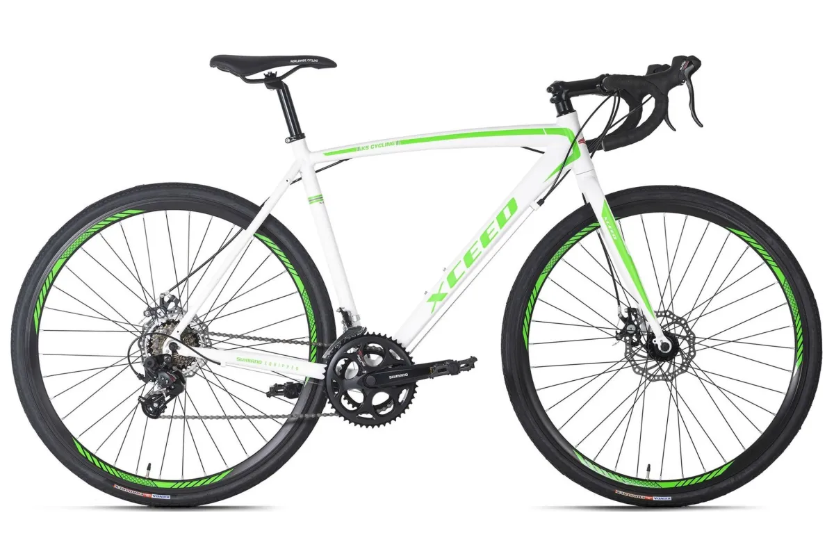 Xceed firmy KS Cycling oferuje prawdziwe wrażenia z jazdy na rowerze wyścigowym, nawet poza utartymi szlakami. Model ten wypełnia lukę między rowerami wyścigowymi, a przełajowymi. Szersze, lekko wyprofilowane opony zapewniają niezbędną przyczepność na luźnych nawierzchniach, pedały platformowe zapewniają niezbędne wsparcie, a mechaniczne hamulce tarczowe zapewniają odpowiednio wyższą siła hamowania w terenie. Xceed ma także 14 biegów, które można łatwo zmieniać za pomocą precyzyjnej i solidnej manetki od Shimano.