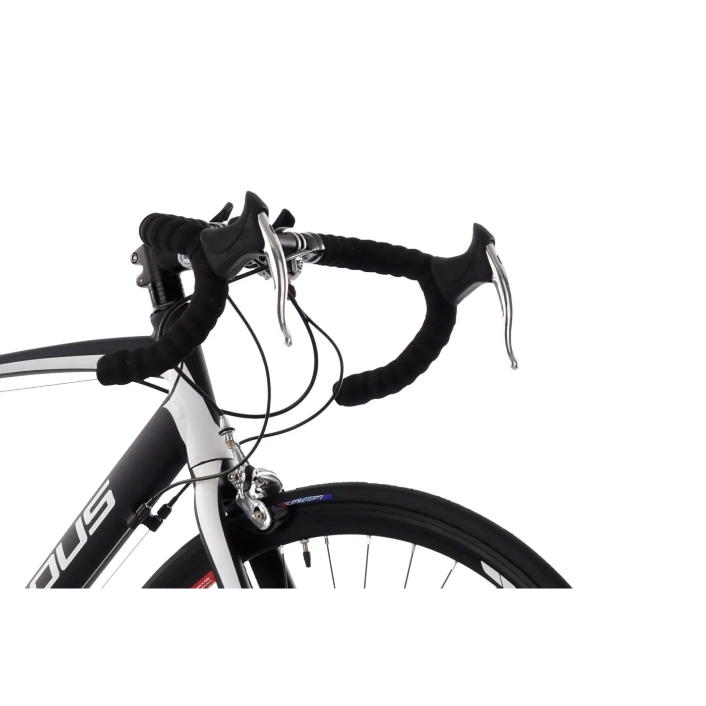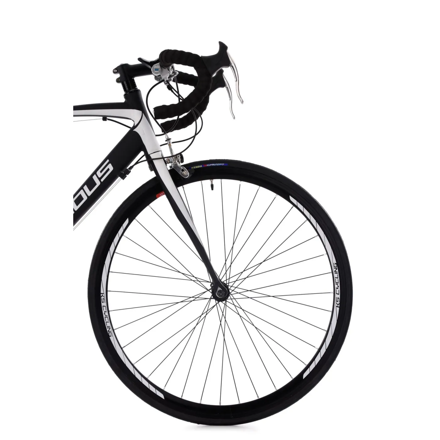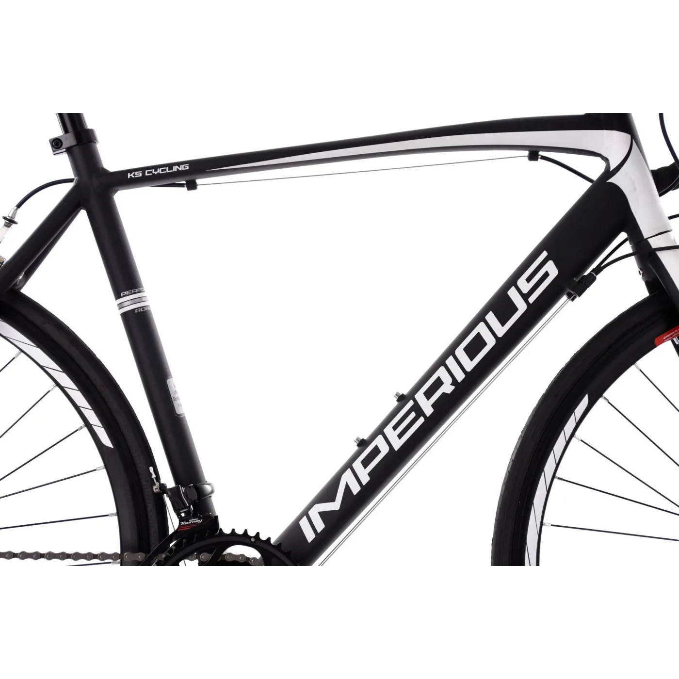 Zbudowany z myślą o maksymalnej prędkości: z rowerem szosowym Imperious od KS Cycling droga do rekordu życiowego jest prosta! Niepowtarzalny wyścigowy design tego jednośladu przyciągnie uwagę wszystkich. Jest wykonany w całości z lekkiego aluminium i ozdobiony kolorowymi detalami. Siodełko, obręcze i widelec płynnie łączą się ze sobą. Zastosowane hamulce Dual-Pivot znacznie redukują odkształcenia, zwiększając tolerancję i wytrzymałość.