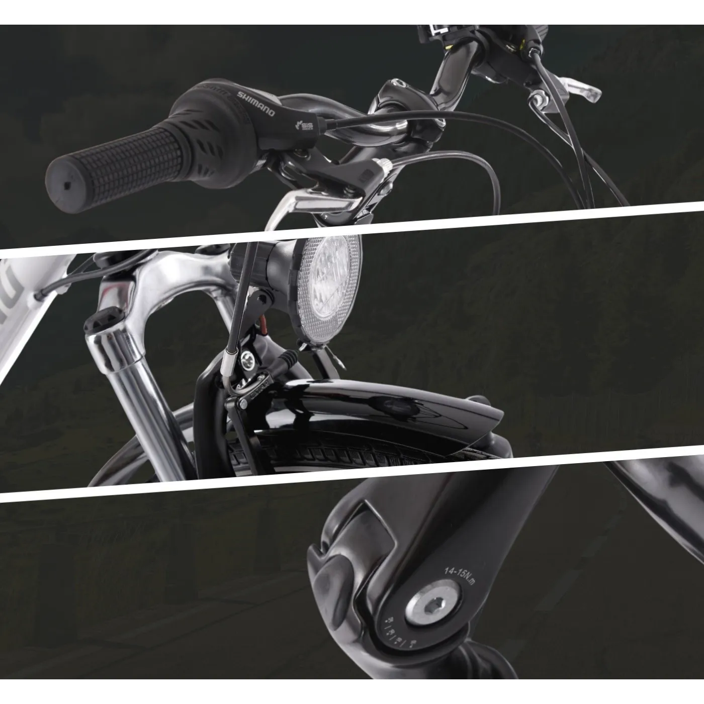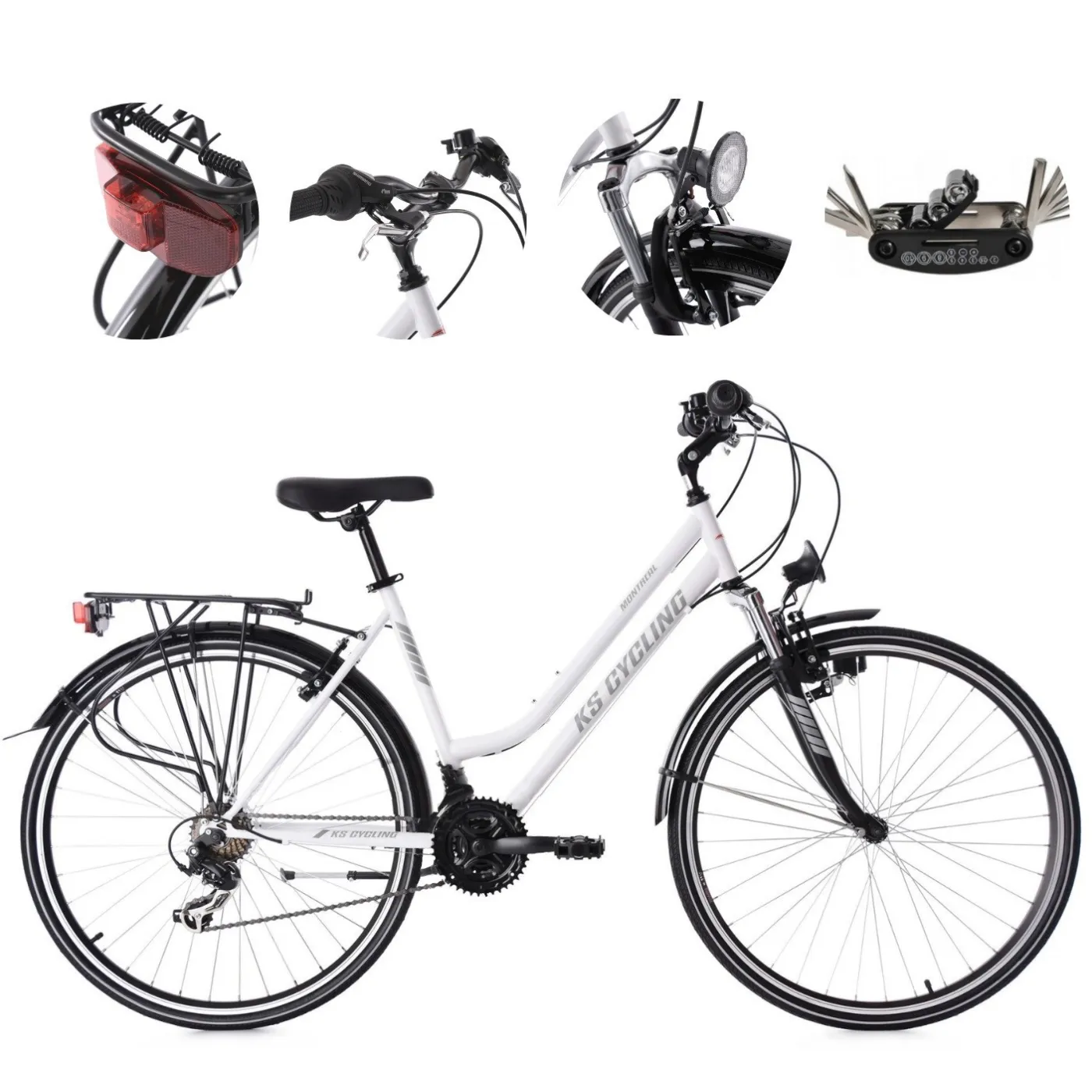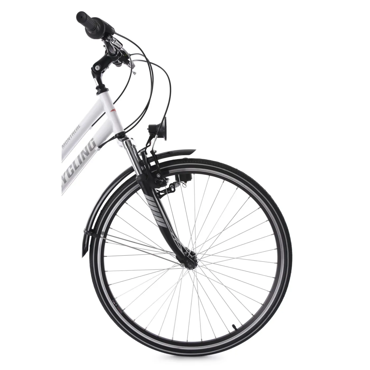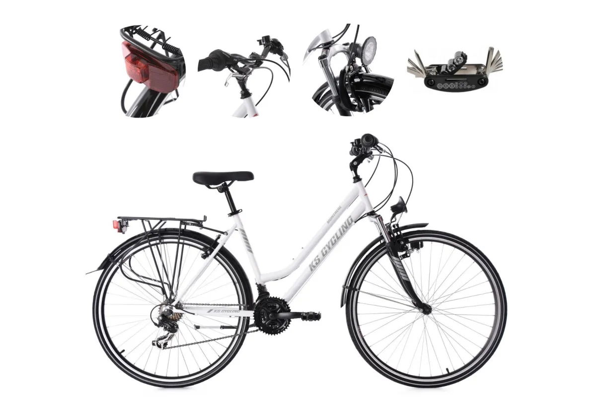 💡 Model ten został wyposażony w praktyczne dodatki, które zwiększają jego funkcjonalność. Zintegrowane światła sprawiają, że rowerzysta jest dobrze widoczny także po zmroku, co znacząco poprawia bezpieczeństwo. Kolor biały mat (Montreal) nadaje całości elegancki i nowoczesny charakter, który pasuje zarówno do miejskich ulic, jak i tras poza miastem.